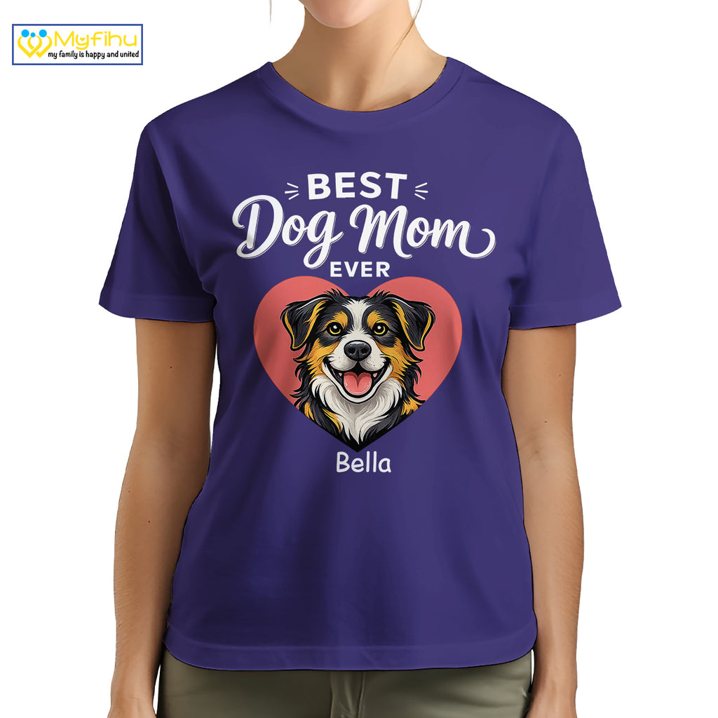 Best Dog Mom Ever Custom Dogface and Name Premium Women's T-Shirt for Mom DM07