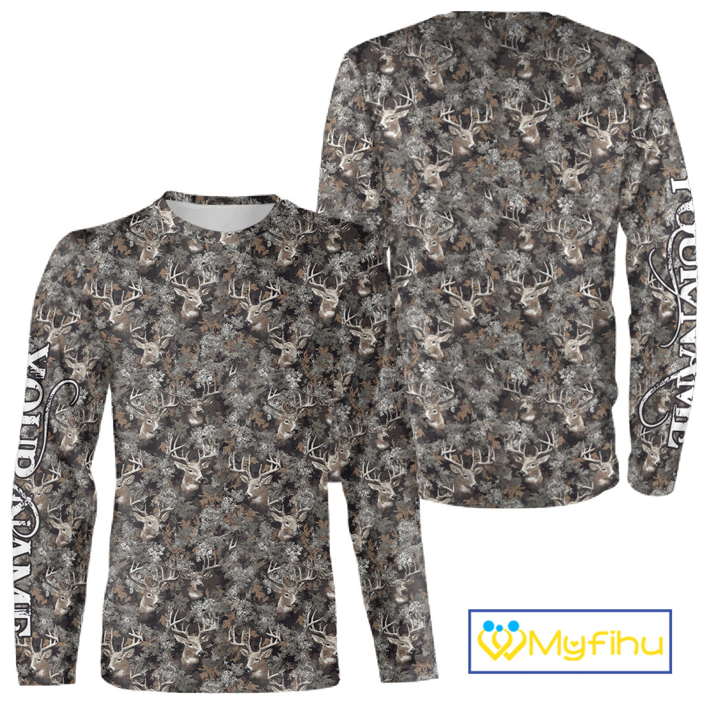 Beautiful Deer Hunting Shirt Pattern Deer Camo Custom Name 3D All Over Printed Hunting Gift NHT90