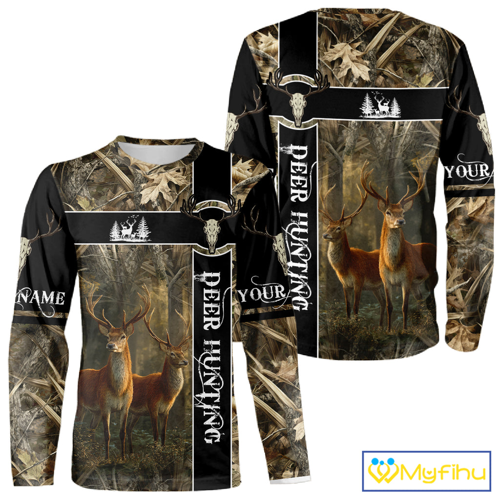 Designed for deer hunters and outdoor enthusiasts, this shirt blends style, comfort, breathable and funtionality in one. The unique hunting-inspired design can be personalized with your name, along with details like the American flag, camouflage patterns, and more - making it the perfect gift ideas for hunters during deer hunting season.