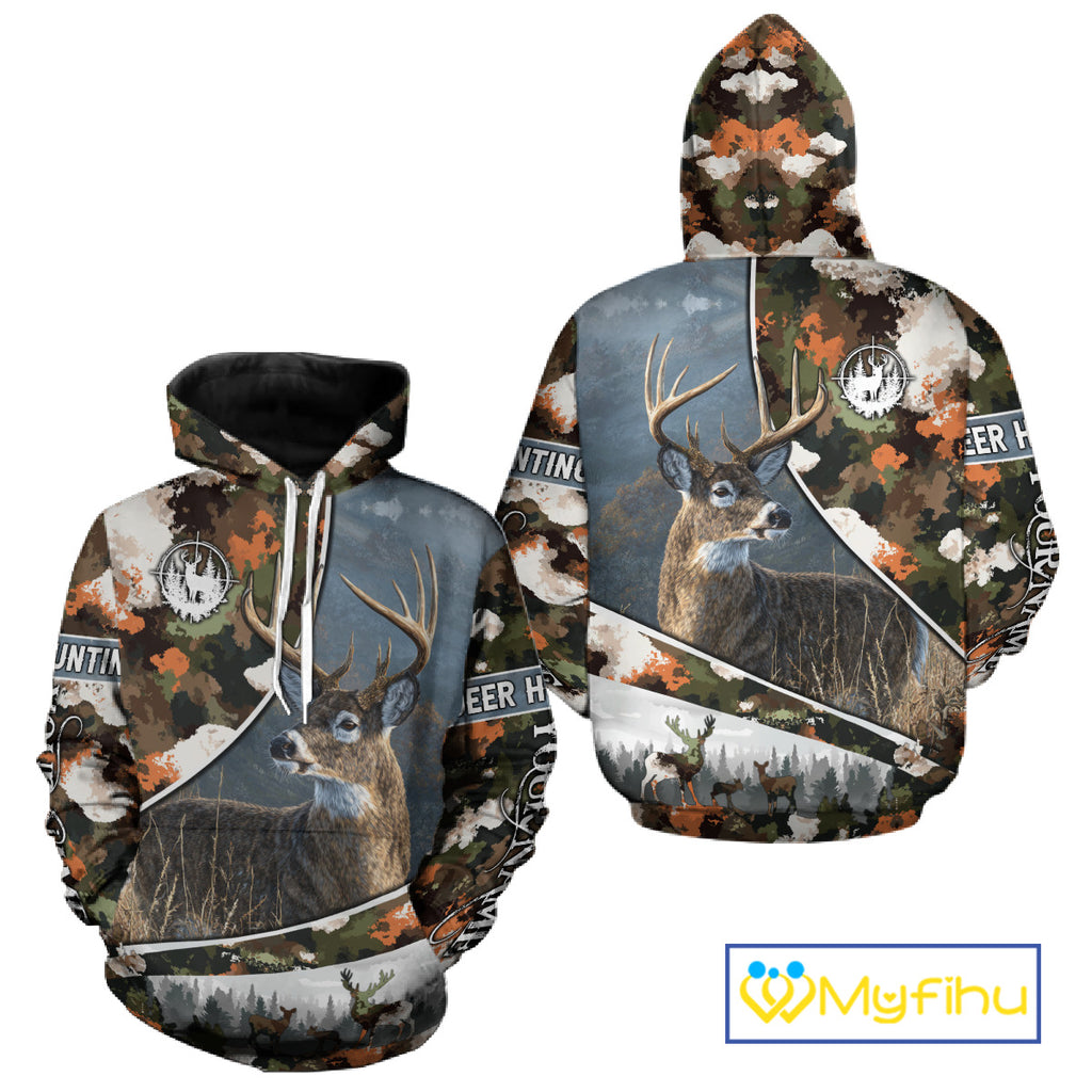 Best Custom Name Hunting Deer 3D Shirt With All Over Whitetail Deer Print And Camouflage NHT70