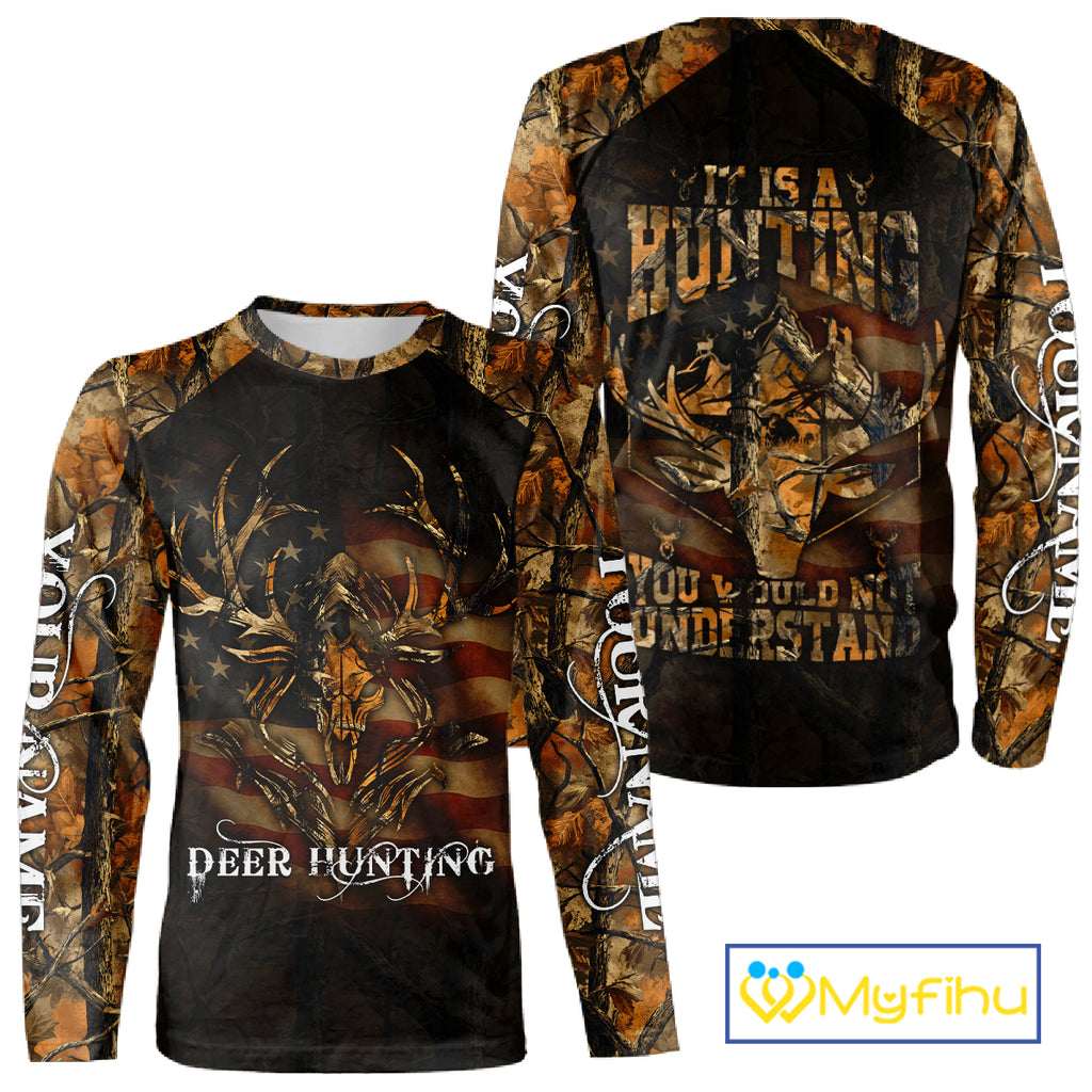 Designed for deer hunters and outdoor enthusiasts, this shirt blends style, comfort, breathable and funtionality in one. The unique hunting-inspired design can be personalized with your name, along with details like the American flag, camouflage patterns, and more - making it the perfect gift ideas for hunters during deer hunting season.