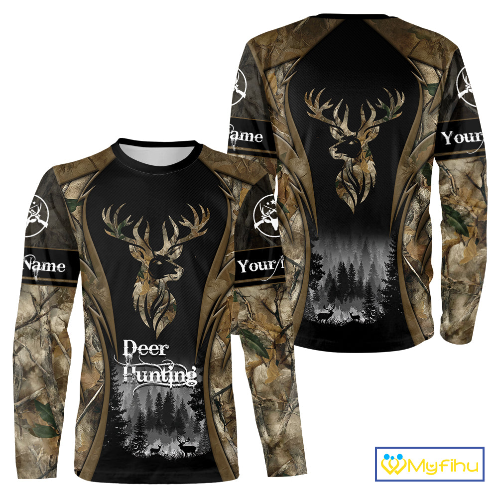 Designed for deer hunters and outdoor enthusiasts, this shirt blends style, comfort, breathable and funtionality in one. The unique hunting-inspired design can be personalized with your name, along with details like the American flag, camouflage patterns, and more - making it the perfect gift ideas for hunters during deer hunting season.