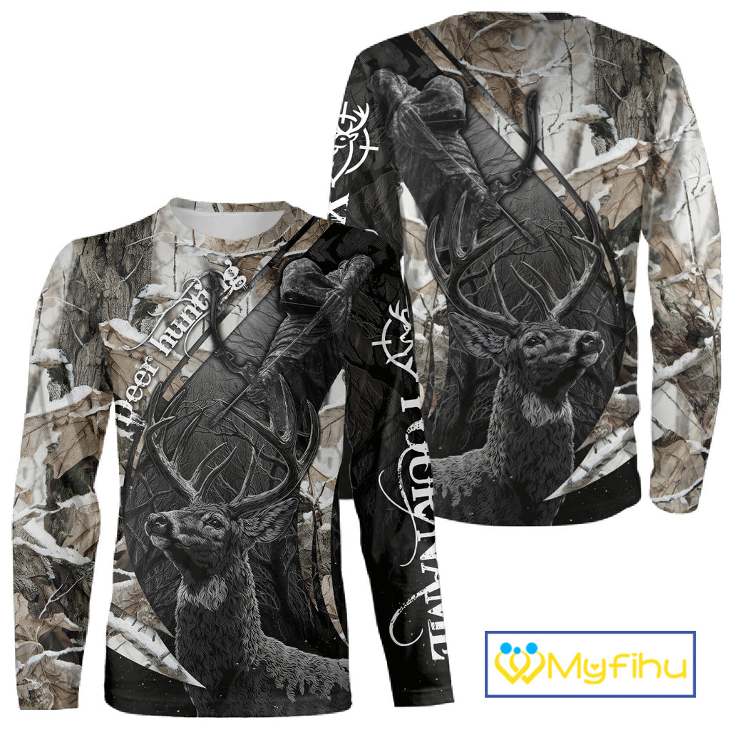 Custom 3D Deer Hunting Shirt With Black Deer Grim Reaper Winter Camo For Deer Hunting Season NHT74