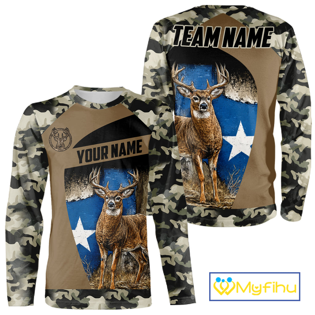Custom Big Buck Deer Hunting 3D All Over Print Camo with Texas Flag Outdoor Hunting Apparel NHT32