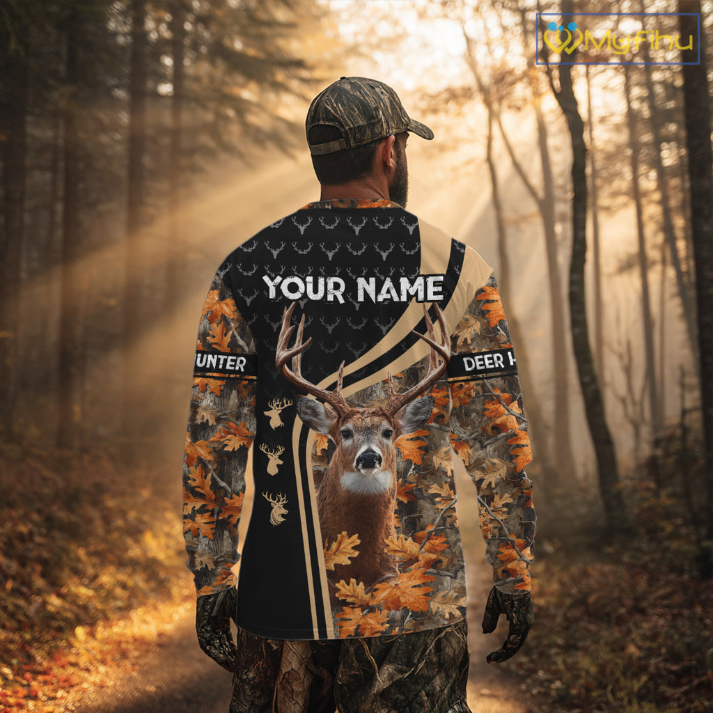 Inspired by the thrill of the hunt and the beauty of the outdoors, this shirt combines durability, comfort, and a unique hunting vibe. Customize it with your name or preferred design elements — from deer graphics to scenic landscapes — to create a one-of-a-kind piece. A perfect gift for passionate deer hunters and outdoor lovers, especially during hunting season.