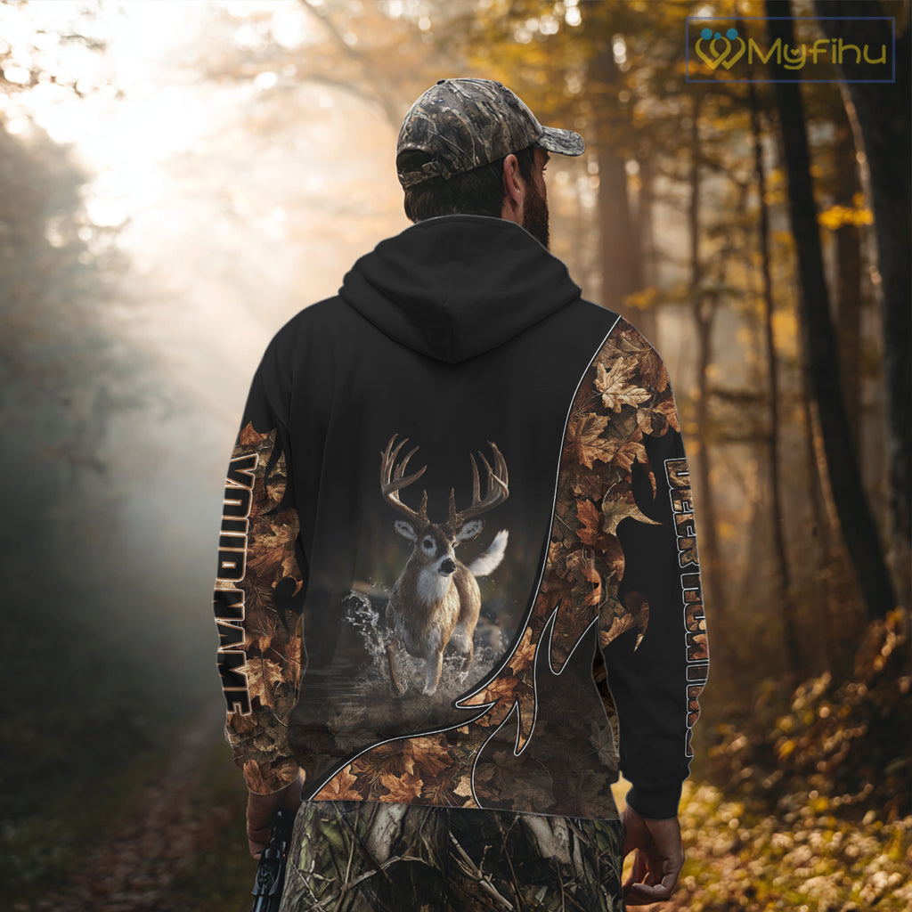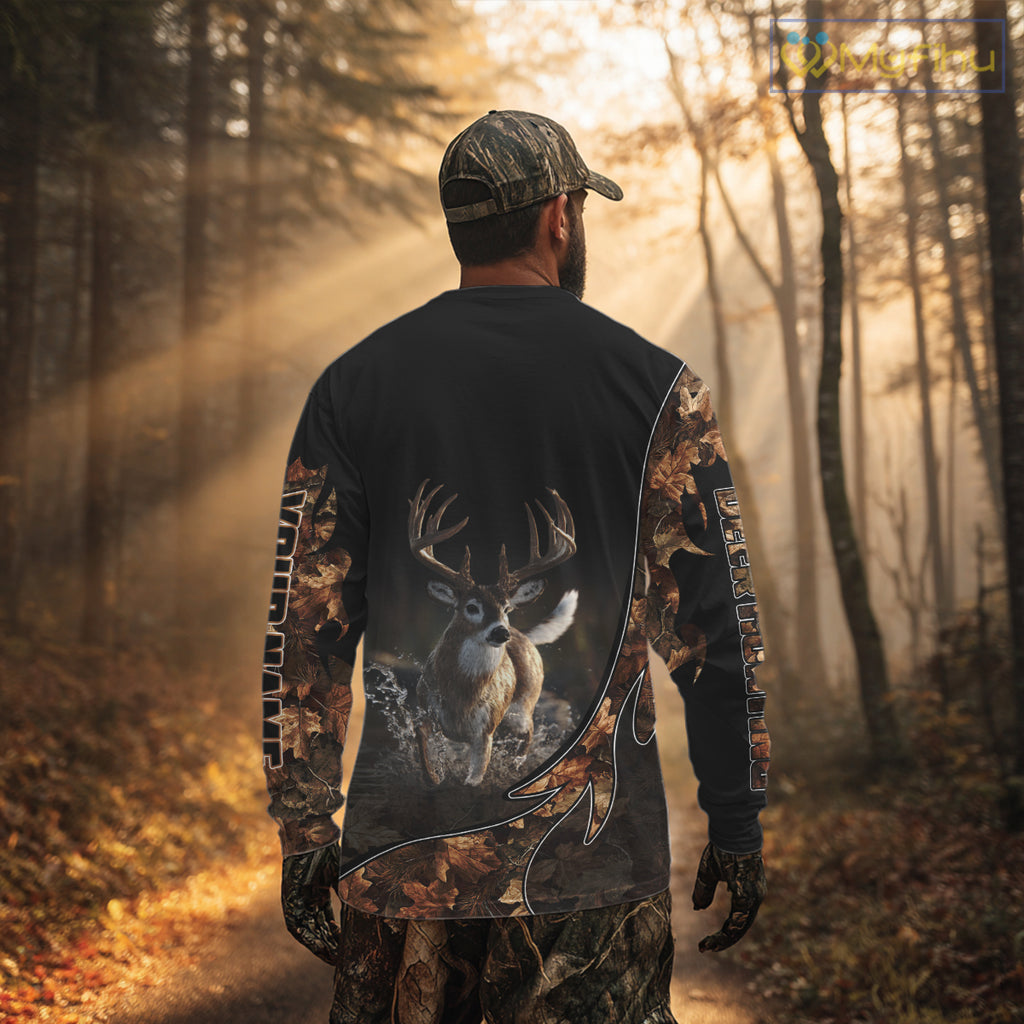 Deer Hunting Big Game Shirt 3D All Over Print, Black Camo Autumn, Custom Name Gift NHT164