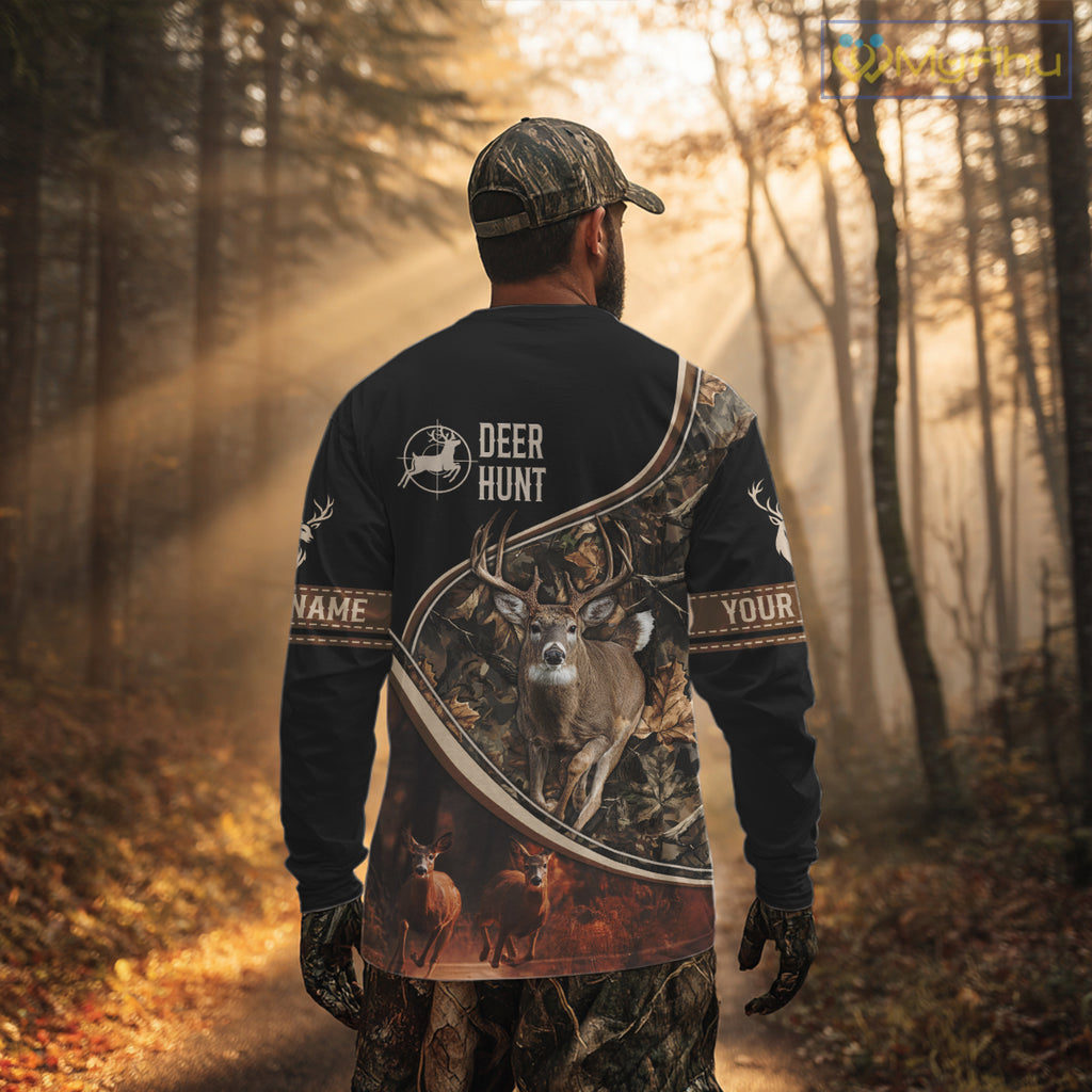 Inspired by the thrill of the hunt and the beauty of the outdoors, this shirt combines durability, comfort, and a unique hunting vibe. Customize it with your name or preferred design elements — from deer graphics to scenic landscapes — to create a one-of-a-kind piece. A perfect gift for passionate deer hunters and outdoor lovers, especially during hunting season.