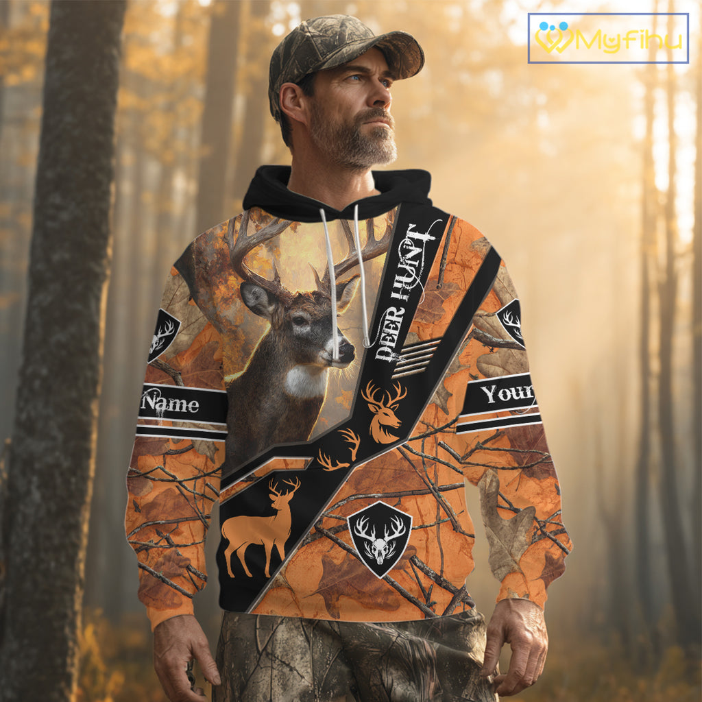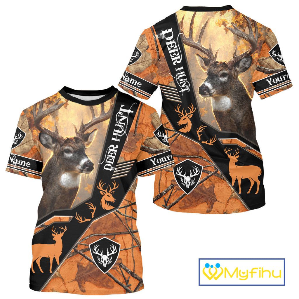 Deer Hunting Orange Camouflage 3D Printing Custom Name Shirts, Best Deer Hunting Shirts for Men NBT152