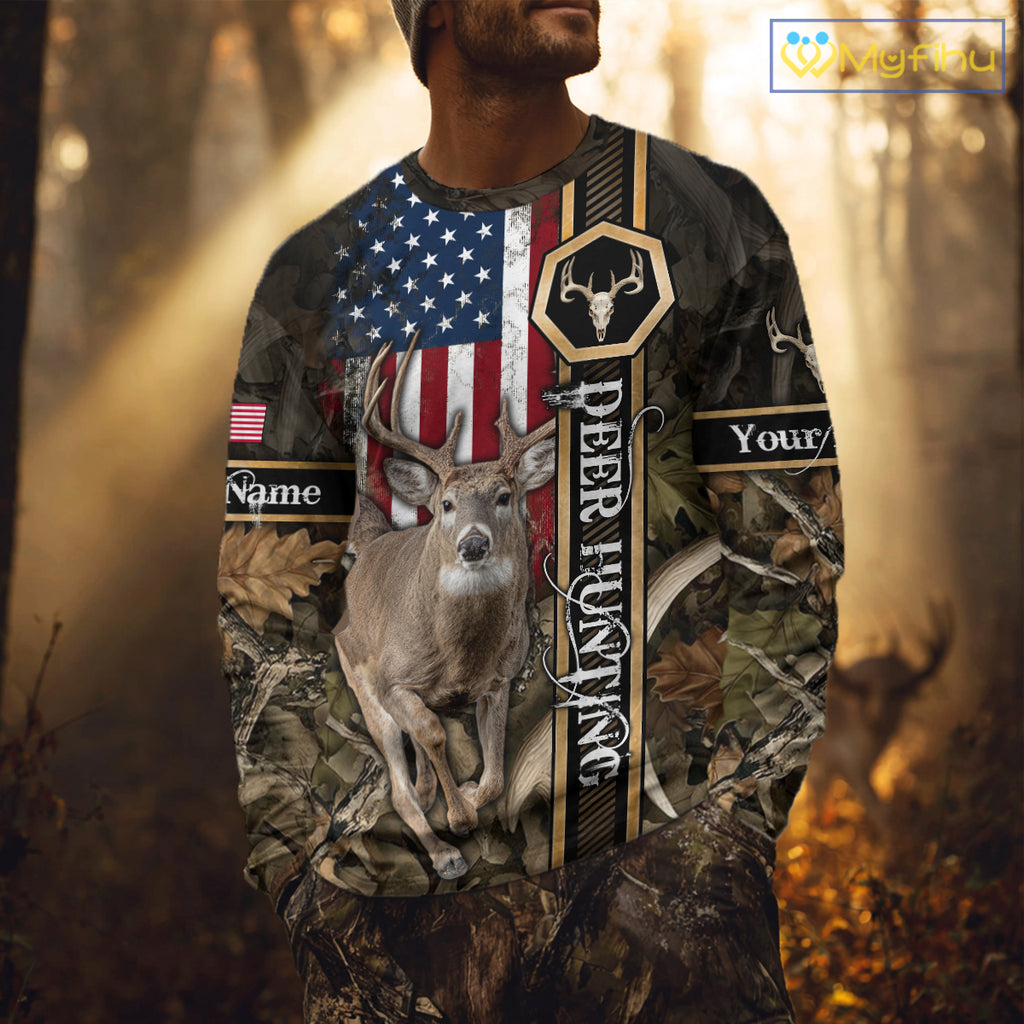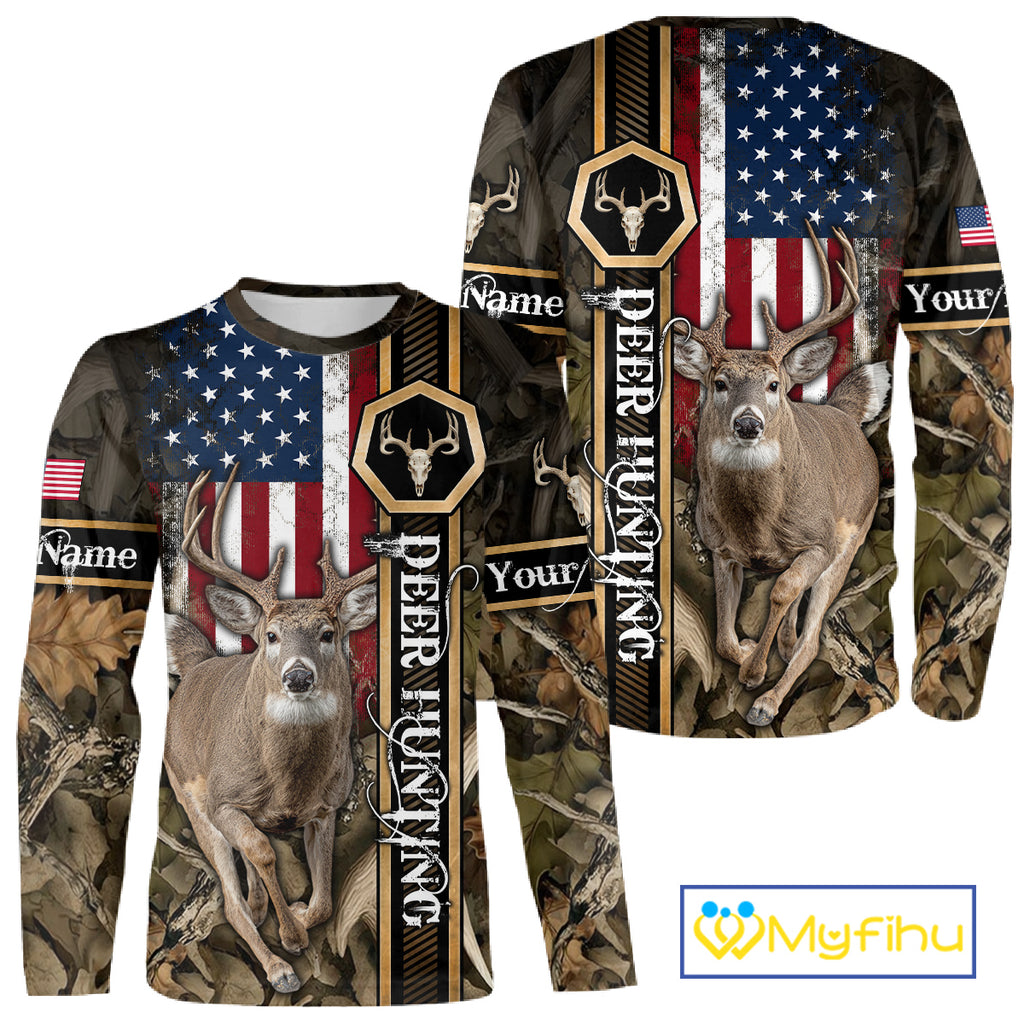 Deer Hunting Shirt US Flag 3D All Over Print, Hunting Clothes for Deer Hunting Season NHT165