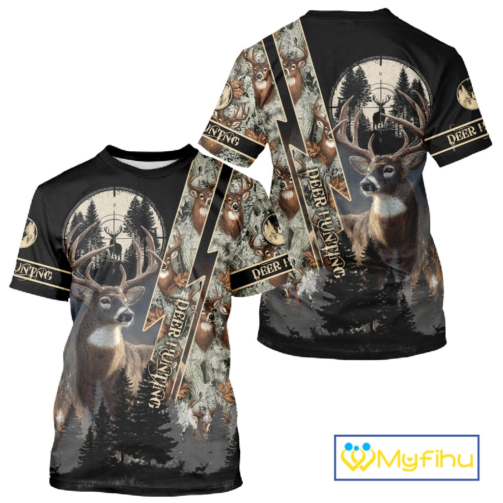 Inspired by the thrill of the hunt and the beauty of the outdoors, this shirt combines durability, comfort, and a unique hunting vibe. Customize it with your name or preferred design elements — from deer graphics to scenic landscapes — to create a one-of-a-kind piece. A perfect gift for passionate deer hunters and outdoor lovers, especially during hunting season.