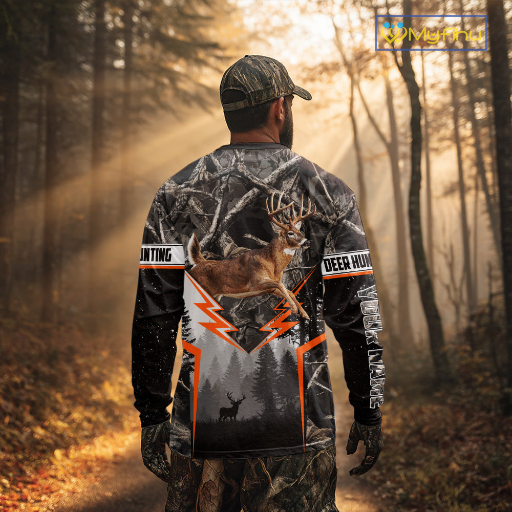 Designed for deer hunters and outdoor enthusiasts, this shirt blends style, comfort, breathable and funtionality in one. The unique hunting-inspired design can be personalized with your name, along with details like the American flag, camouflage patterns, and more - making it the perfect gift ideas for hunters during deer hunting season.