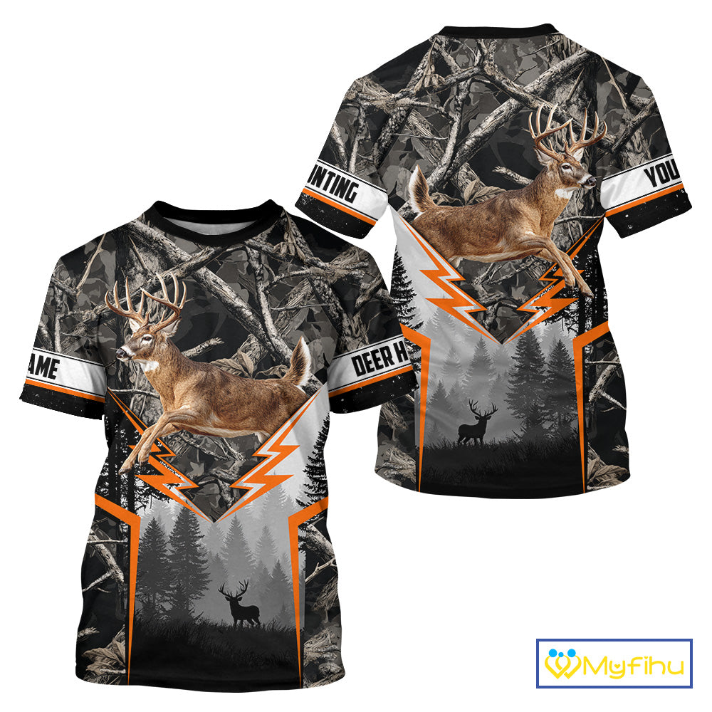 Jumping Whitetail Deer Hunting Dark Camo Custom Name 3D All Over Printed Shirts, Hunting Gifts NBT73