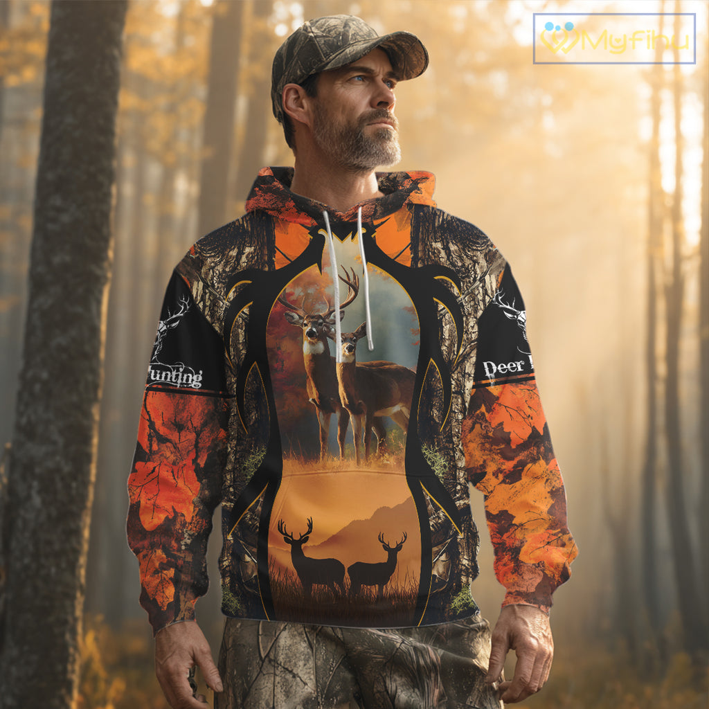 Orange Camo Whitetail Deer Hunting Shirt Custom name for Fall Season, Perfect Gifts for Hunters NBT04