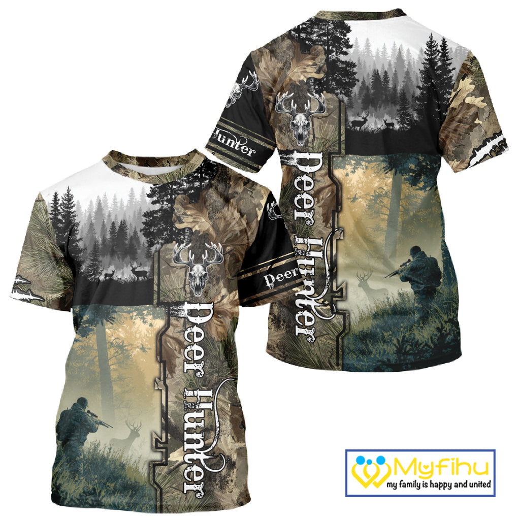 Personalized Forest Camo Deer Hunting 3D All Over Printed Custom Name Shirts Hunting Gifts NBT65