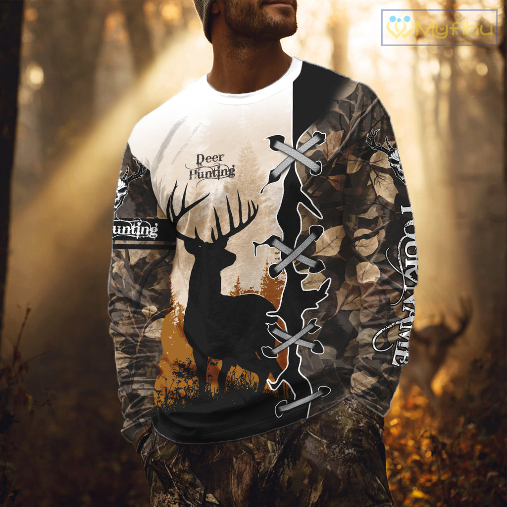 Designed for deer hunters and outdoor enthusiasts, this shirt blends style, comfort, breathable and funtionality in one. The unique hunting-inspired design can be personalized with your name, along with details like the American flag, camouflage patterns, and more - making it the perfect gift ideas for hunters during deer hunting season.