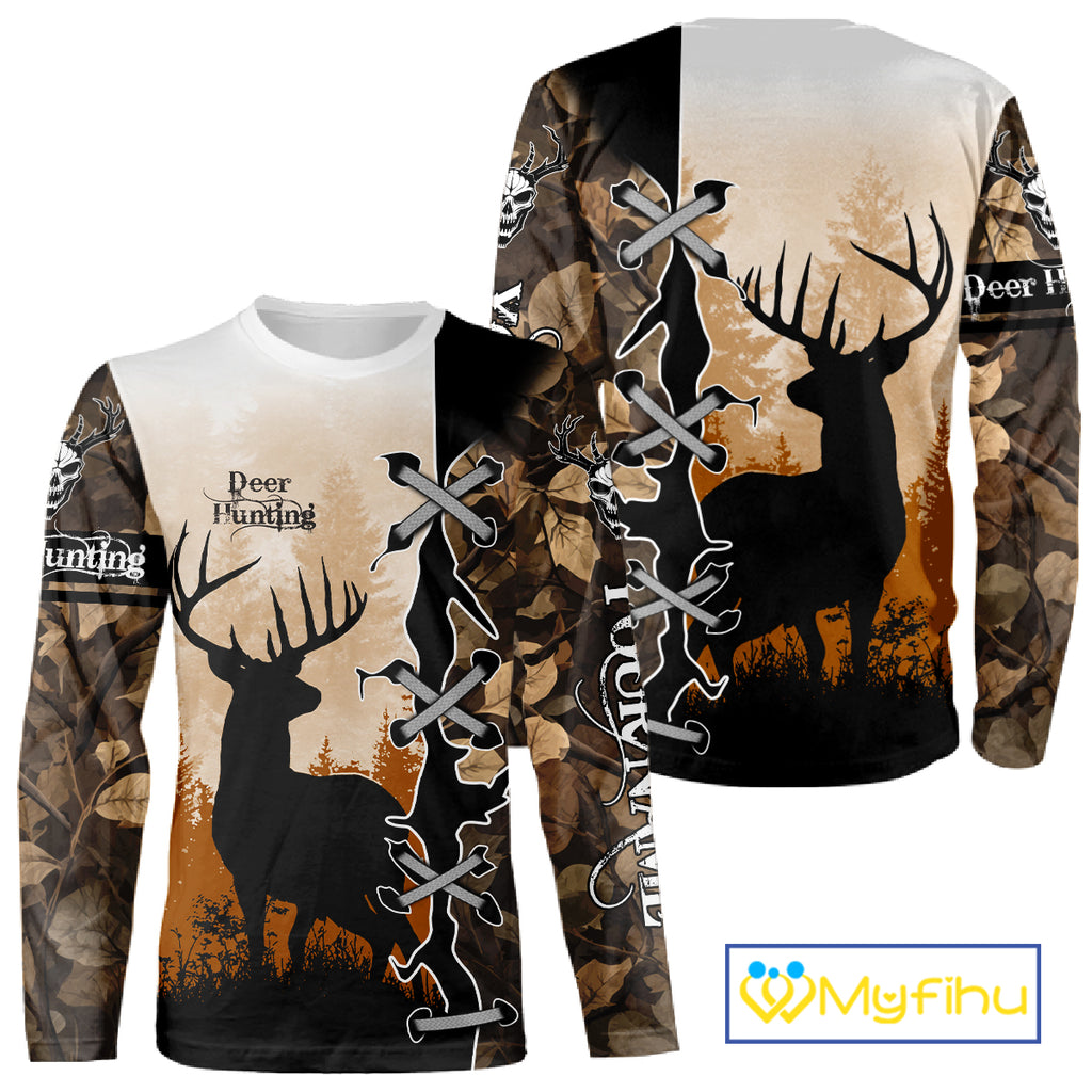 Whitetail Buck Hunting Hoodie, Longsleeve Shirt, Autumn Brown Camo, Perfect Hunter Gifts NBT15