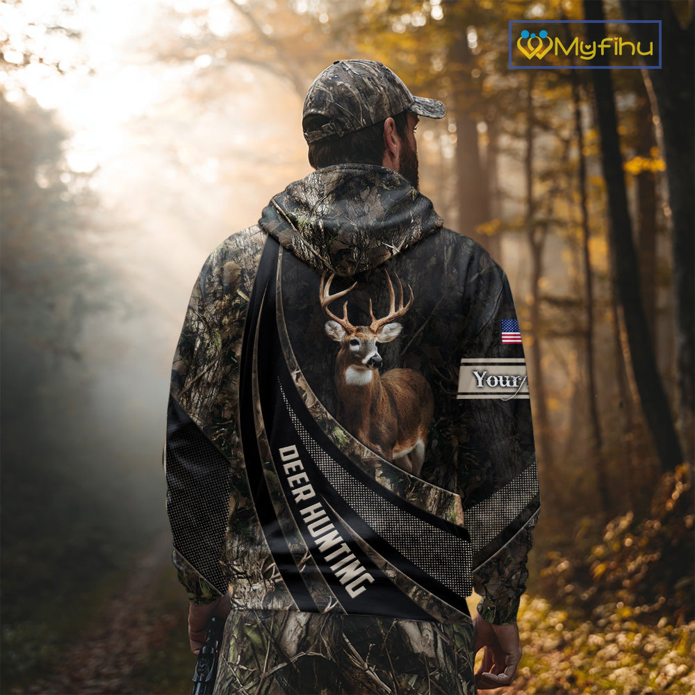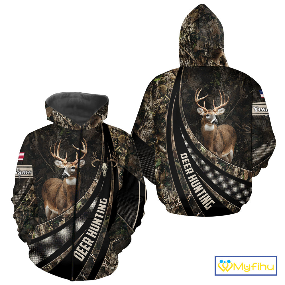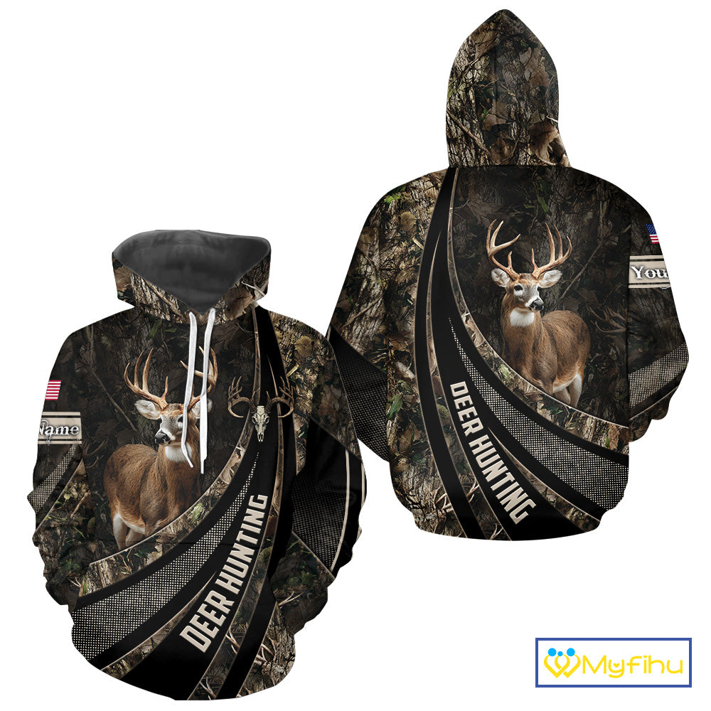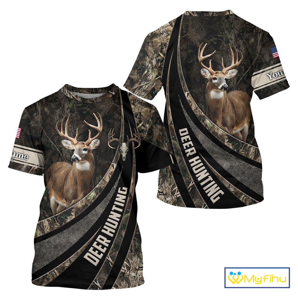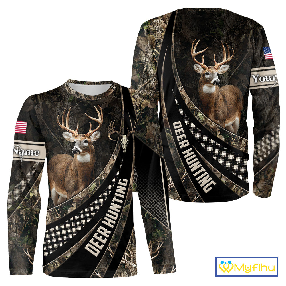Whitetail Deer Hunting Shirt Camouflage US Flag, Deer Hunter Custom Name, Hunting Gift NHT123