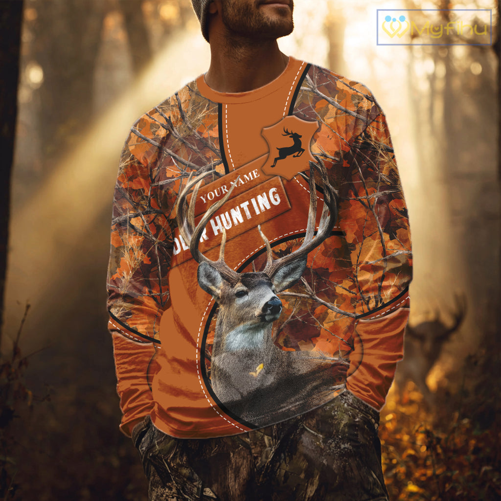 Inspired by the thrill of the hunt and the beauty of the outdoors, this shirt combines durability, comfort, and a unique hunting vibe. Customize it with your name or preferred design elements — from deer graphics to scenic landscapes — to create a one-of-a-kind piece. A perfect gift for passionate deer hunters and outdoor lovers, especially during hunting season.