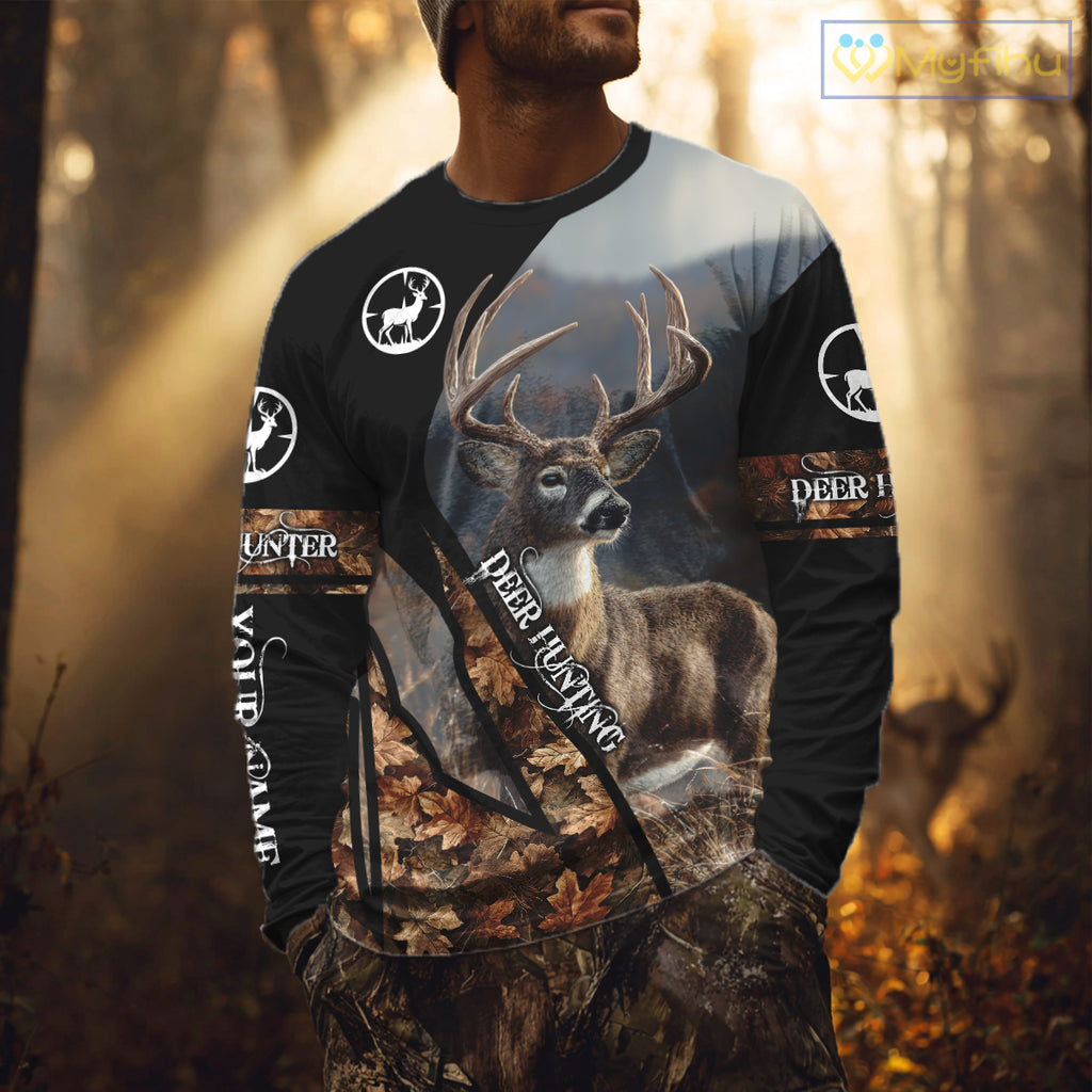 Inspired by the thrill of the hunt and the beauty of the outdoors, this shirt combines durability, comfort, and a unique hunting vibe. Customize it with your name or preferred design elements — from deer graphics to scenic landscapes — to create a one-of-a-kind piece. A perfect gift for passionate deer hunters and outdoor lovers, especially during hunting season.