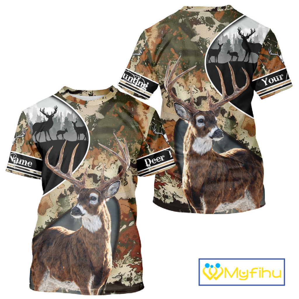 Whitetail Deer Hunting Shirt With Camouflage, Deer Hunter Custom Name, Hunting Gift  NHT97