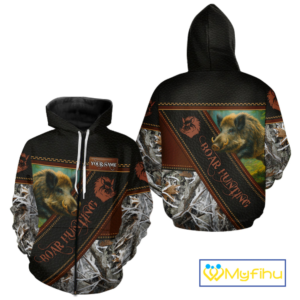 Wild Boar Hunting Black Camo Snow Winter 3D All Over Printed Shirts Custom Name Hunting Gift NHT103