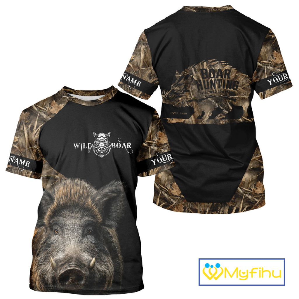 Wild Boar Hunting Camouflage Custom Name 3D All Over Print Shirts, Personalized Hunting Gifts NBT103
