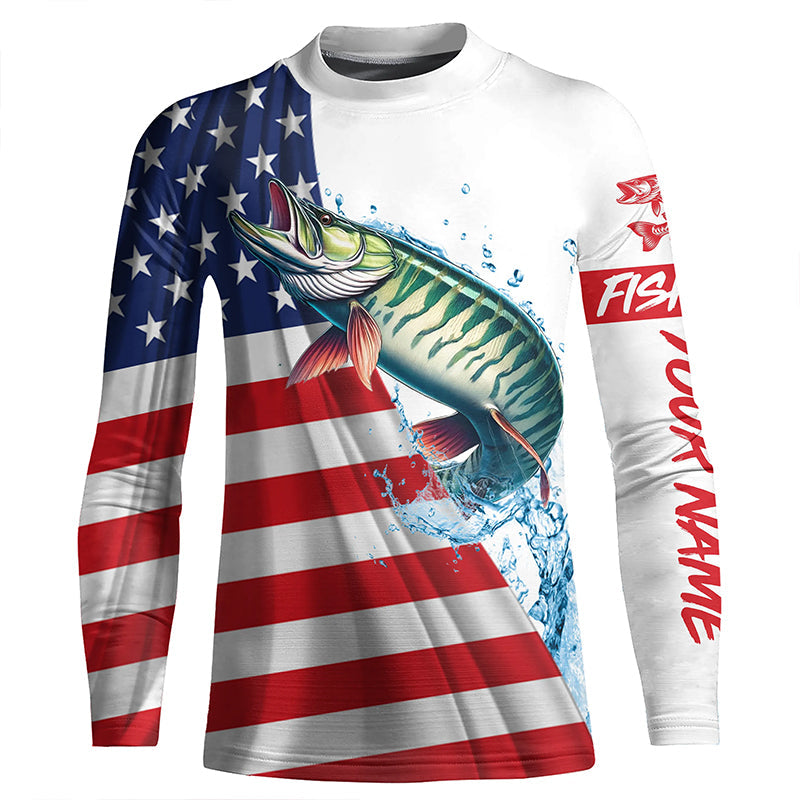American flag patriotic Musky fishing Custom Name UV Protection long sleeve Fishing Shirts for men NQS5416