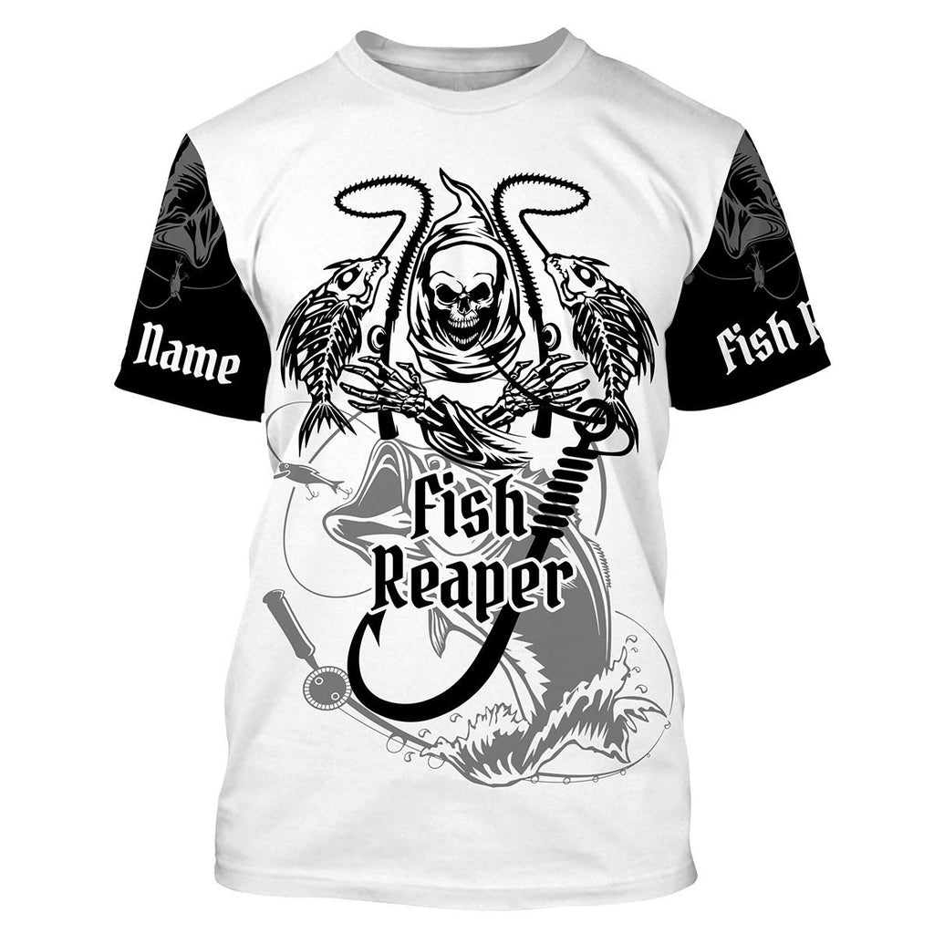 Fish Reaper Bass Fishing Custome Name 3D All Over Printed Shirts Personalized Fishing gift For Adult And Kid NQS345