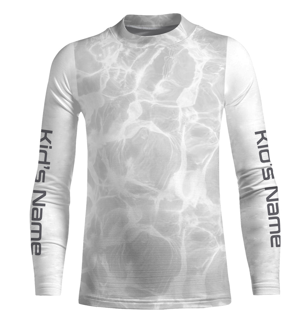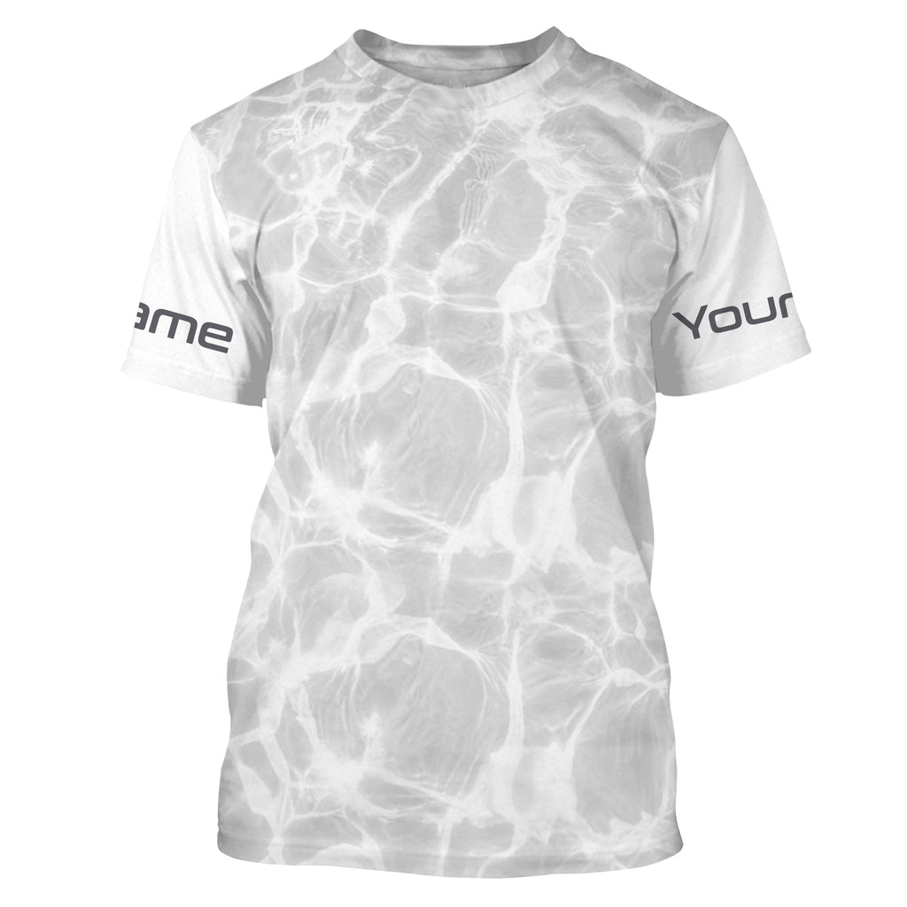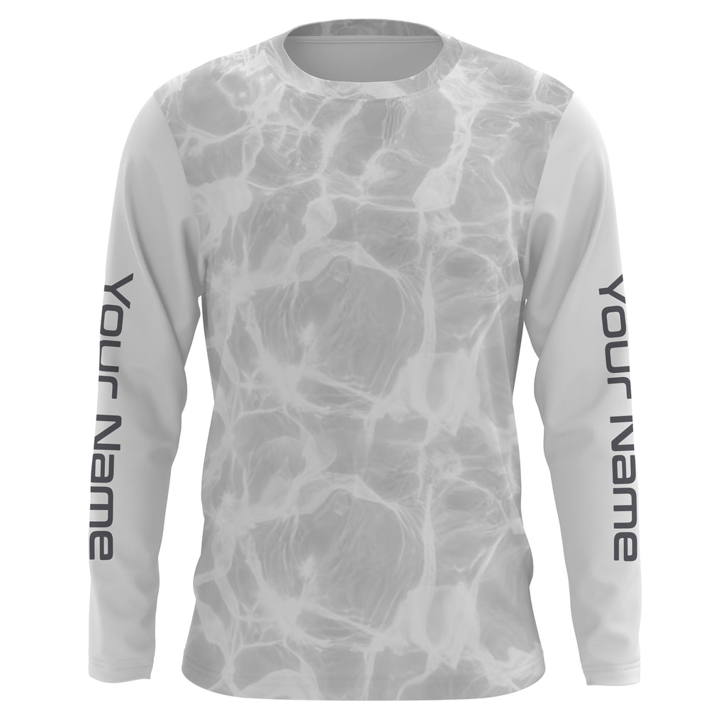 Personalized Fishing Performance Shirts, Water Surface White and Grey Fishing UV Protection Long Sleeve, Fishing Jerseys FSD2674