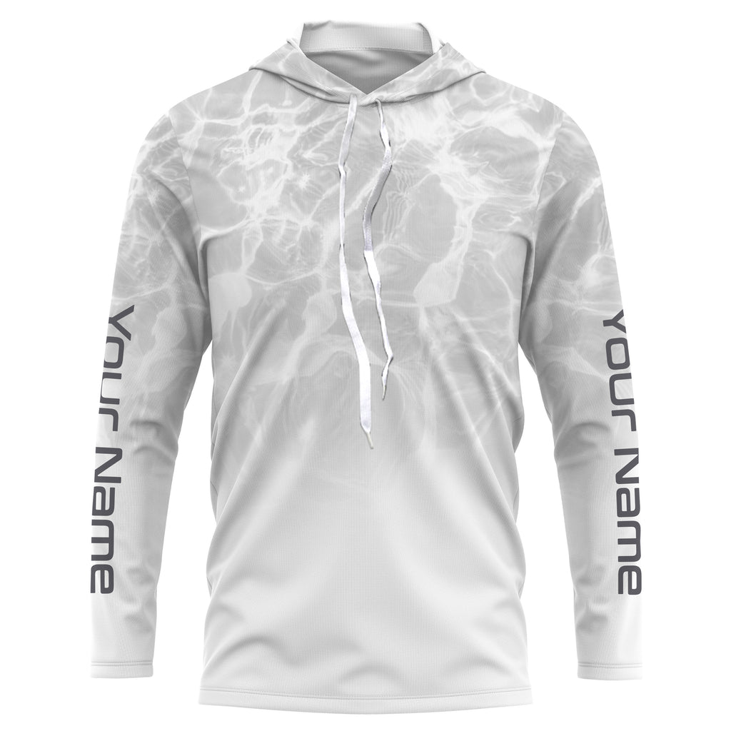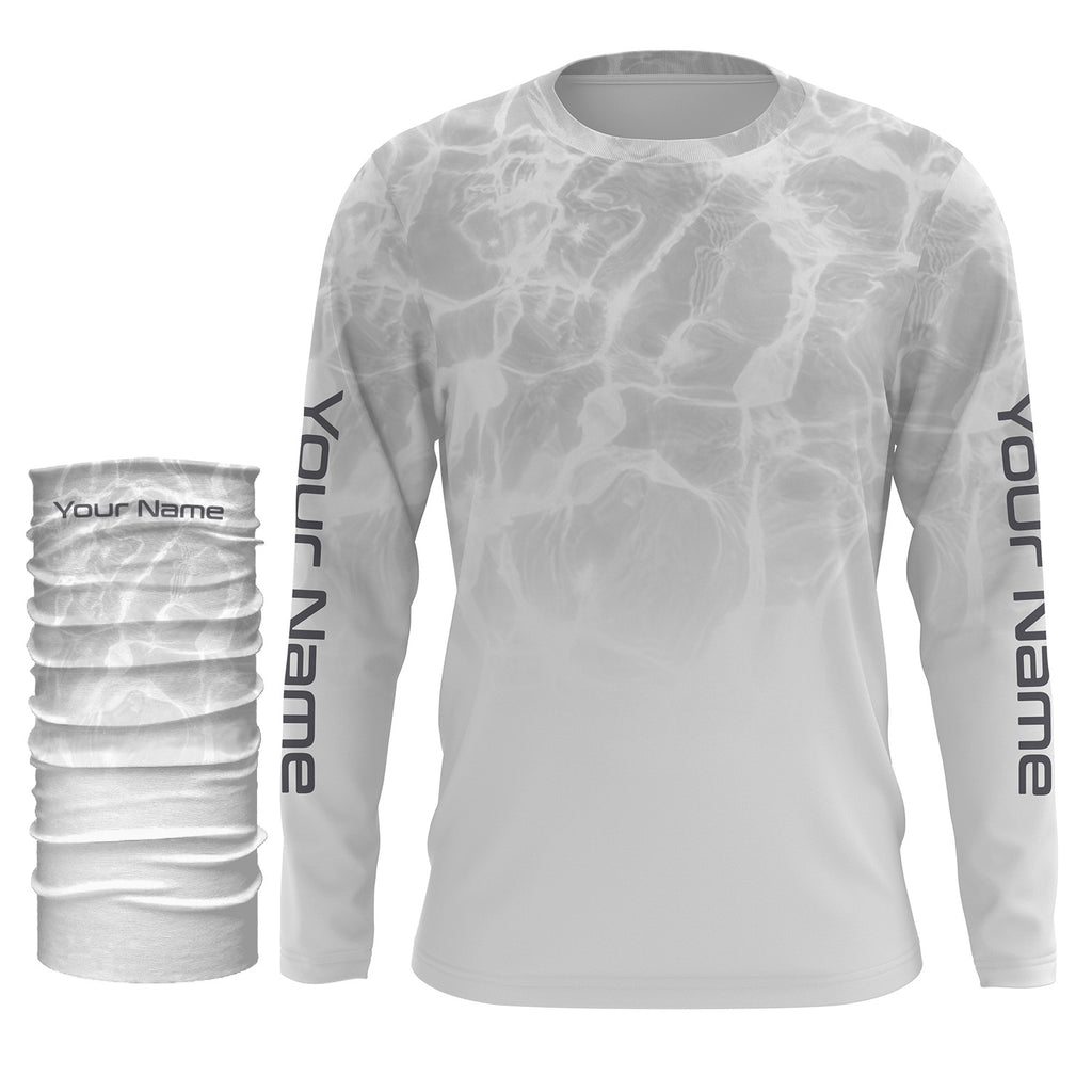 Personalized Water Wave White-grey Performance Shirts, Fishing Tournament UV Protection Long Sleeve, Fishing Jerseys FSD2672