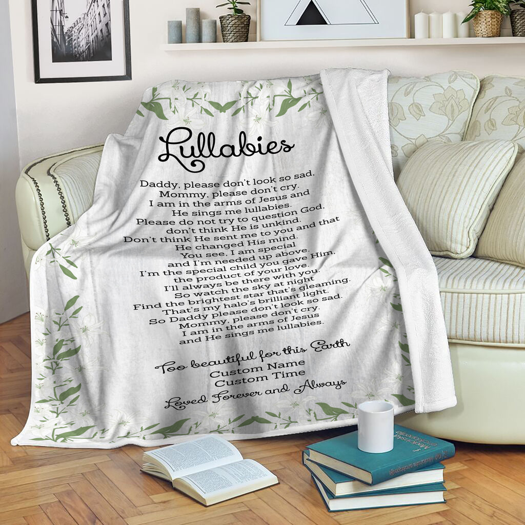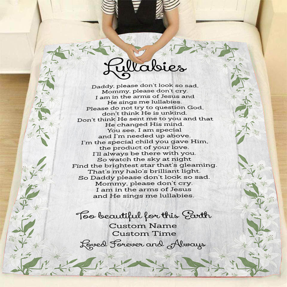 Baby Memorial Blanket| Too Beautiful For This Earth - Custom Blanket Memorial Gift Sympathy Blanket for Loss of Baby, Stillborn Loss, Infant Loss, Miscarriage| Baby Memory Blanket| JB224