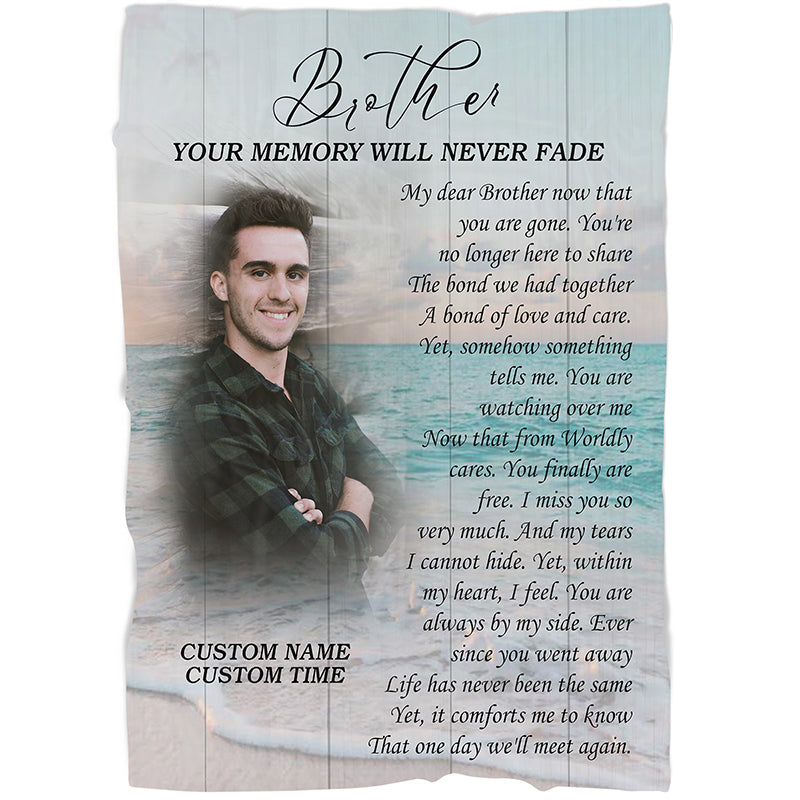 Brother Memorial Blanket, Personalized Sympathy Throw Gift for Loss of Brother in Heaven Bereavement N2755