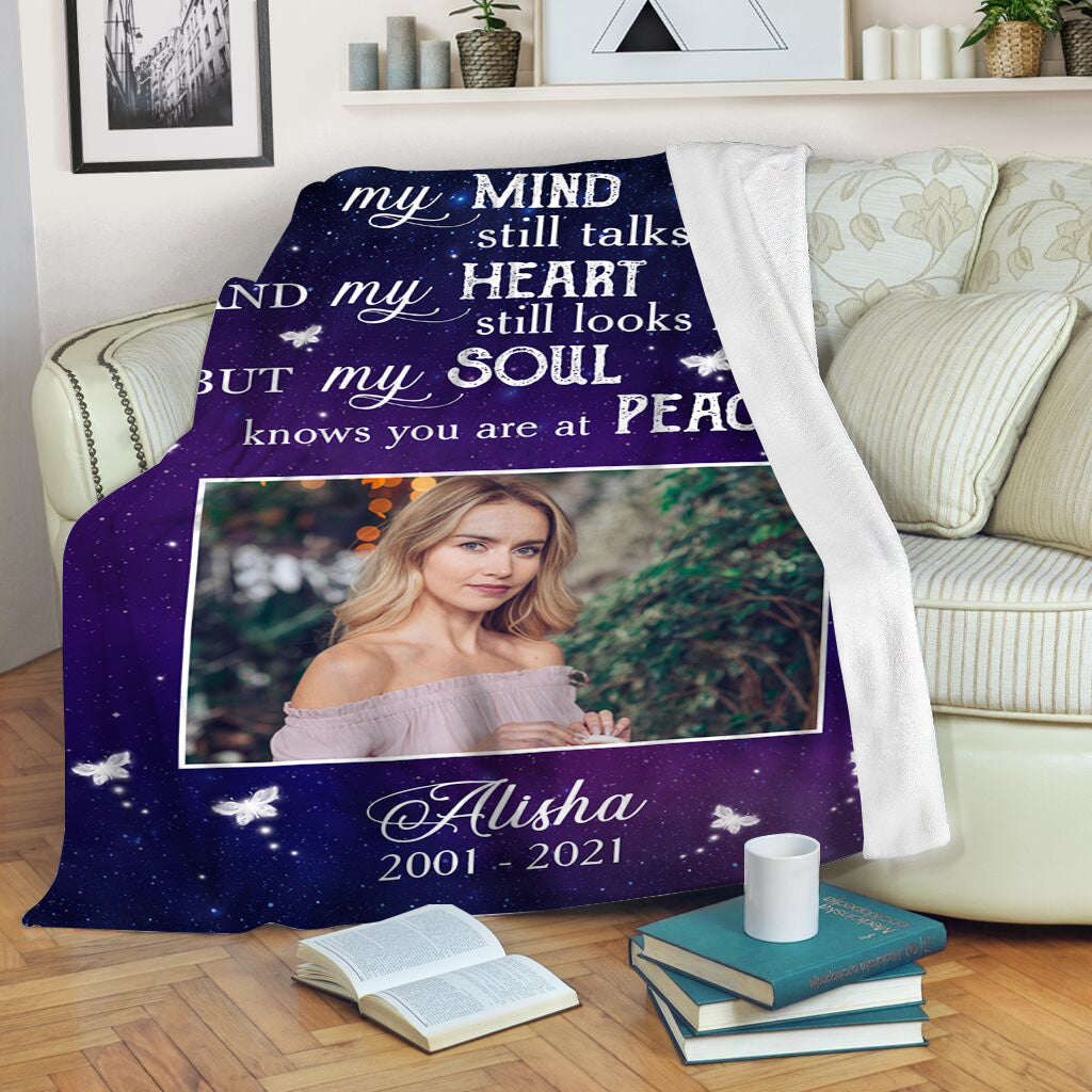 Memory Photo Gifts| Remembrance Gifts| My Mind Still Talks to You Blanket| Remembrance Gifts for Loss of A Loved One Gifts for Sister in Heaven Throw Fleece Blanket| BP6 Myfihu
