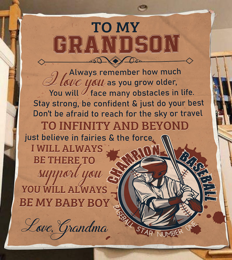 Grandson Baseball Blanket - To My Grandson Courage Fleece Throw from Grandma| T910