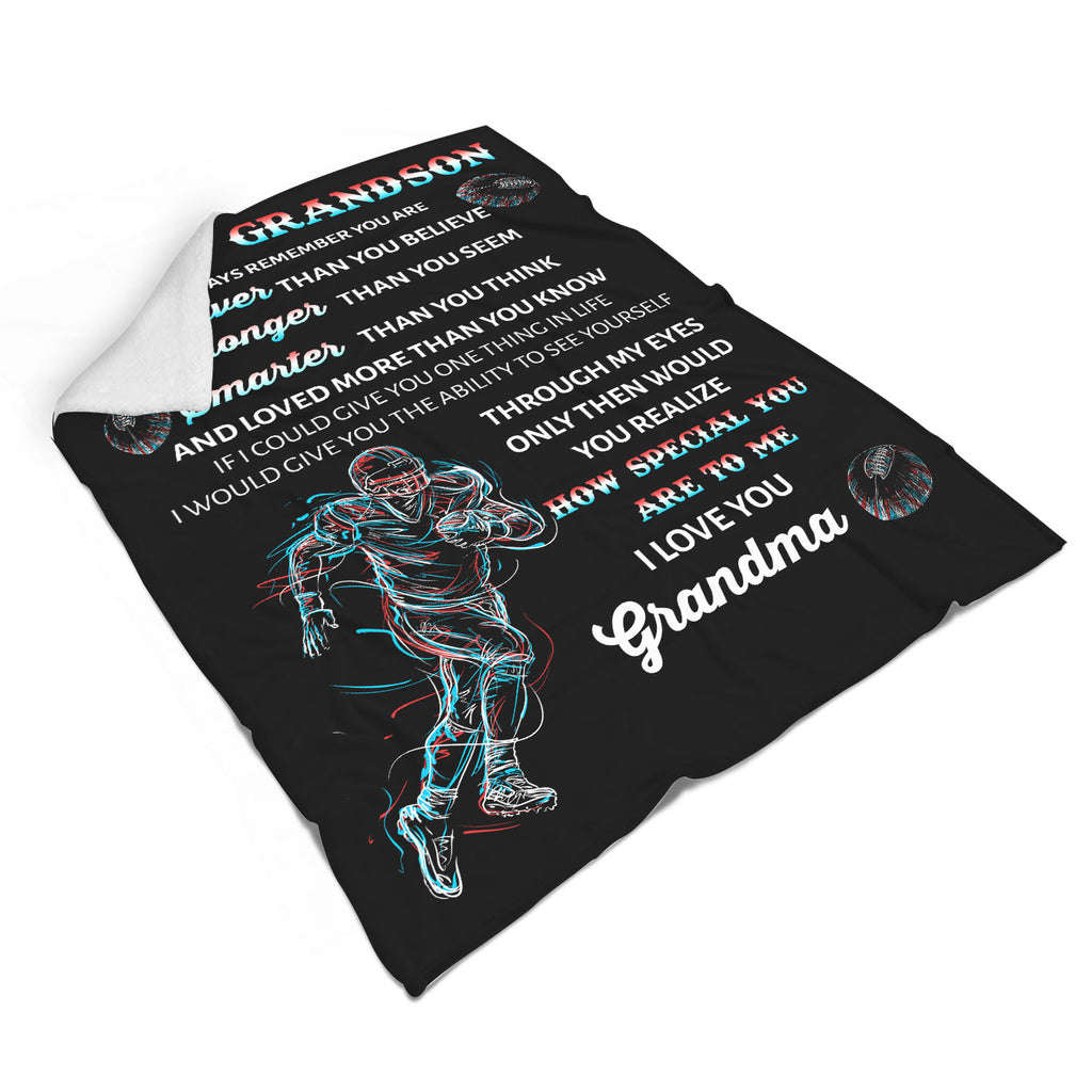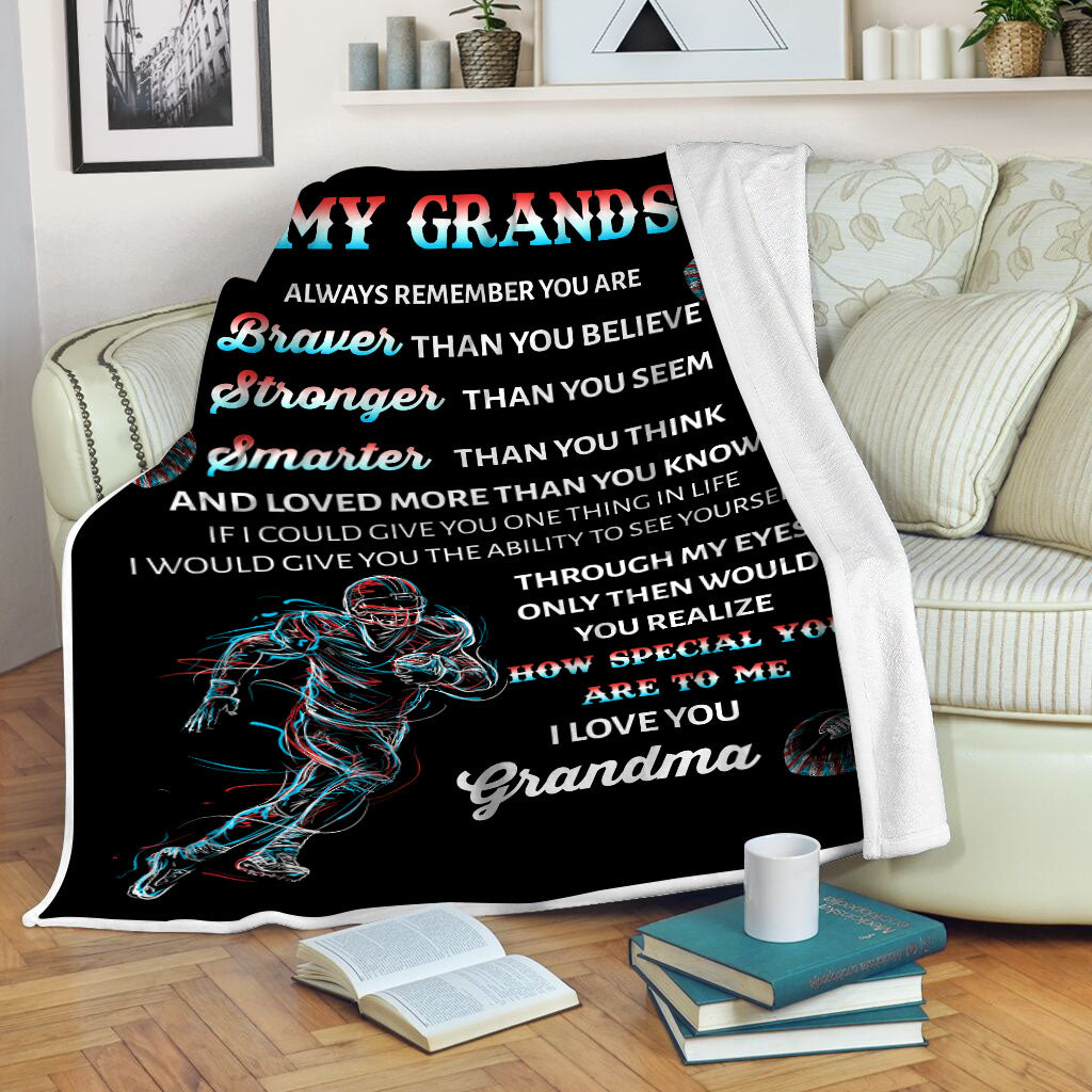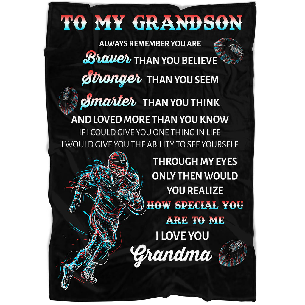 Grandson Football Blanket - To My Grandson Braver Than You Believe - Courage Fleece Throw from Grandma| T911
