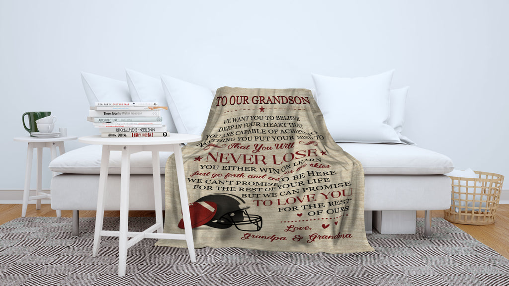Grandson Football Blanket - To My Grandson You Will Never Lose Courage Fleece Throw from Grandma, Gift for American Football Boy| T912