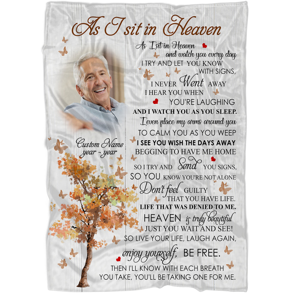 Memorial Blanket - As I Sit In Heaven Blanket Custom Fleece Blanket Memorial Sympathy Gift for Loss Loved One Remembrance Blanket Bereavement Condolence Gift In Loving Memory - JB126