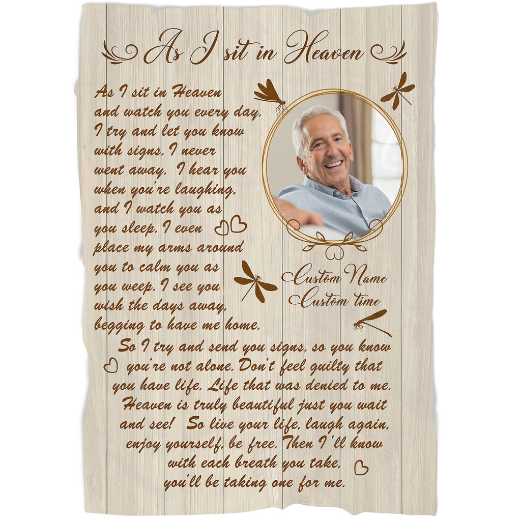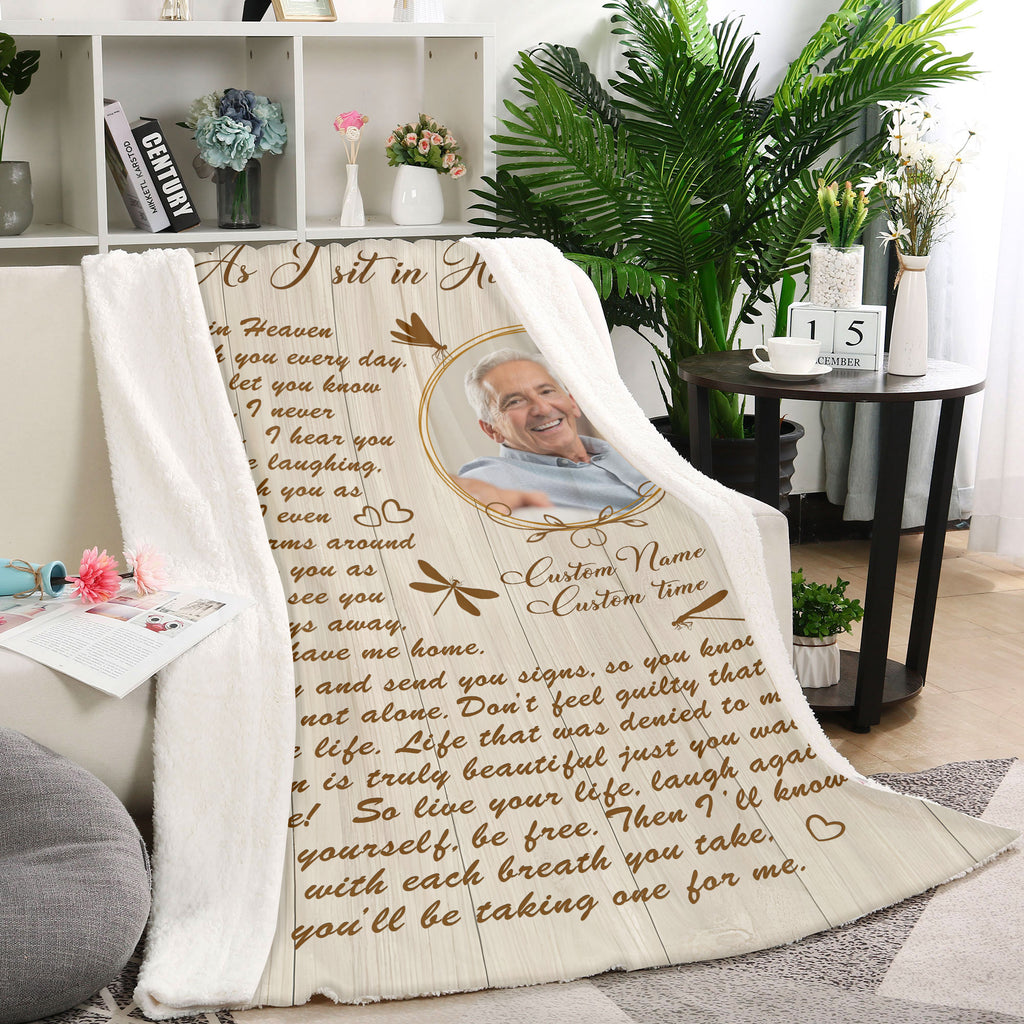 Memorial Blanket - As I Sit In Heaven Dragonfly Fleece Blanket - Personalized Memorial Gift Sympathy Blanket for Loss of Father Mother Memory Blanket Remembrance Fleece Blanket - JB312