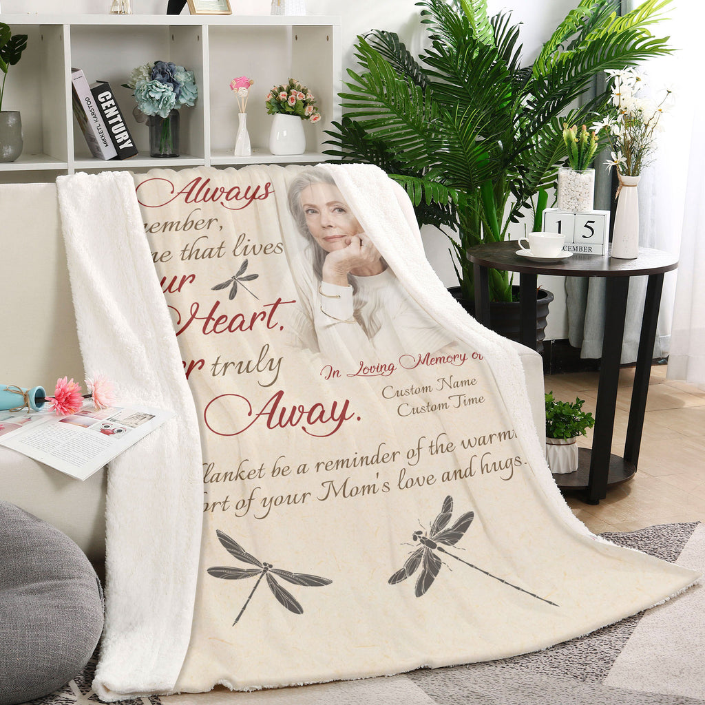 Memorial Blanket for Loss of Mom - Never Truly Goes Away Fleece Blanket Personalized Memorial Gift Sympathy Gift for Loss of Mother Mom in Heaven Mom Remembrance Blanket - JB282