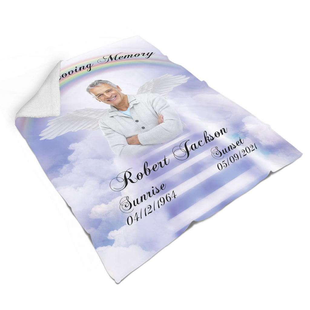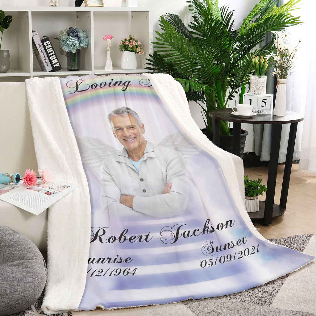 The memorial blanket with a meaningful poem, personalized with picture, name and dates is a warmest and heartfelt remembrance keepsake for the loved ones in heaven.