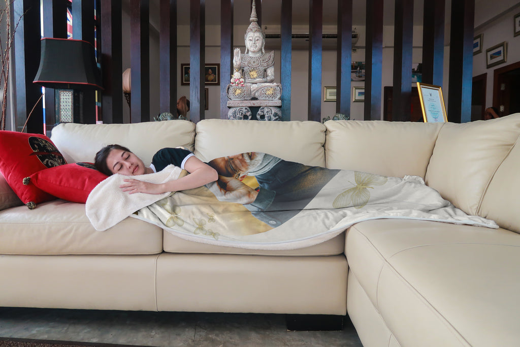• PRINTED in the USA. This super-soft fleece blanket with only one side printed was made from silky polyester, which brings you a plush and warm enough for an in-home accessory and lightweight enough to take on-the-go. Each blanket features a premium suede polyester print for beautiful color vibrancy and hemmed edges. The cozy underside is constructed from an ultra-soft microfleece fabric.