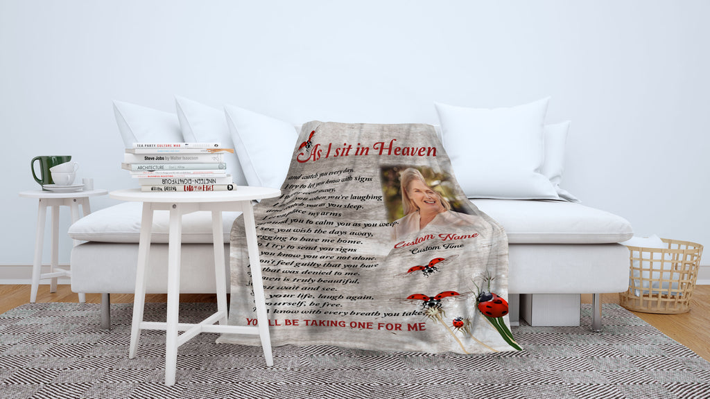 Memorial Blanket Personalized | As I Sit In Heaven Blanket| Memorial Gift, Sympathy Blanket, Remembrance Blanket| T1146