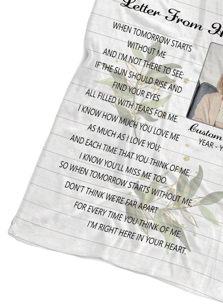 Memorial Blanket Personalized Photo| Letter From Heaven Blanket| Memorial Gift, Sympathy Blanket, Remembrance Blanket| T1139