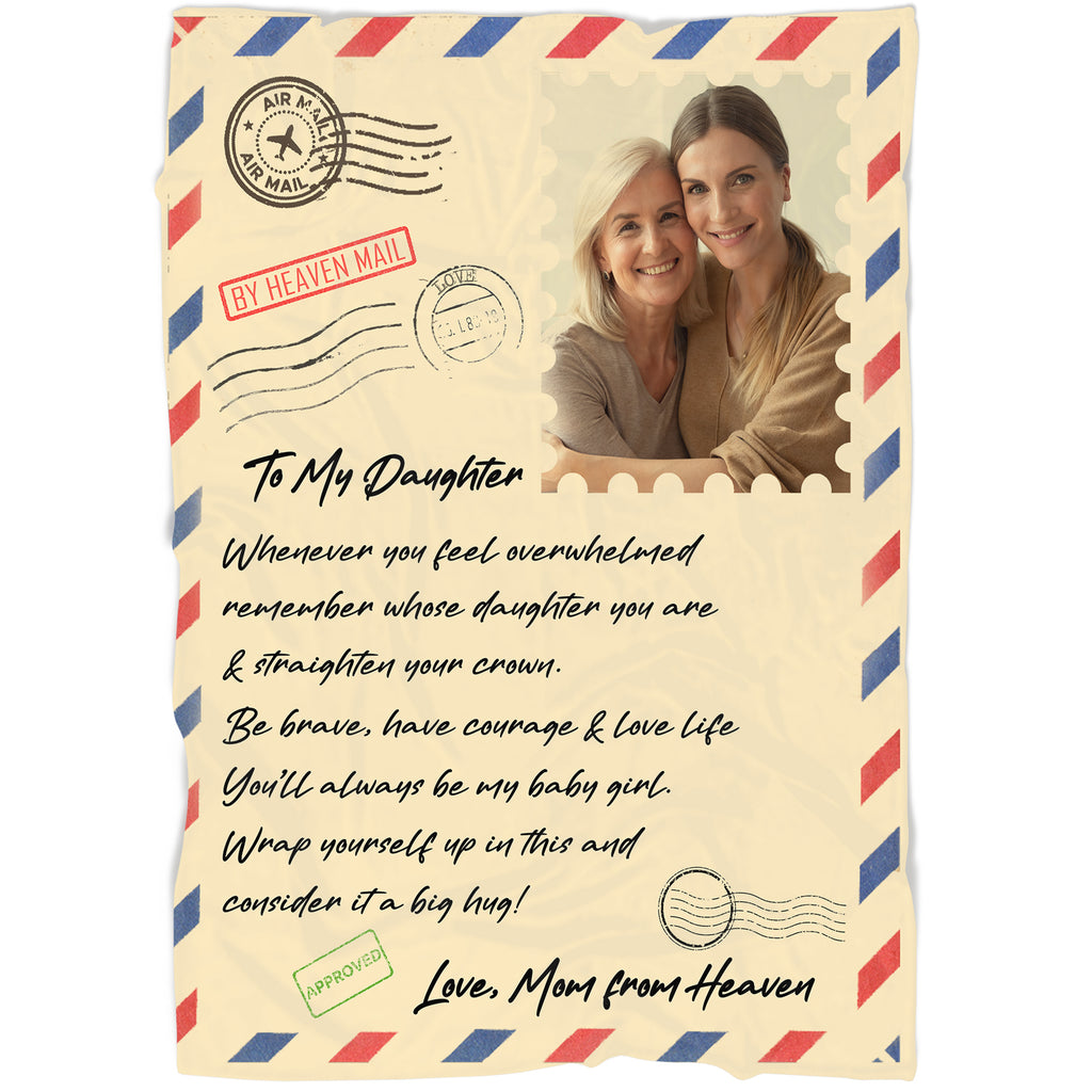Memorial Blanket - To Daughter from Mom in Heaven Personalized Blanket| Custom Photo Remembrance Fleece Throw, Deepest Sympathy Gift, Memorial Blankets and Throws for Mother| N2360