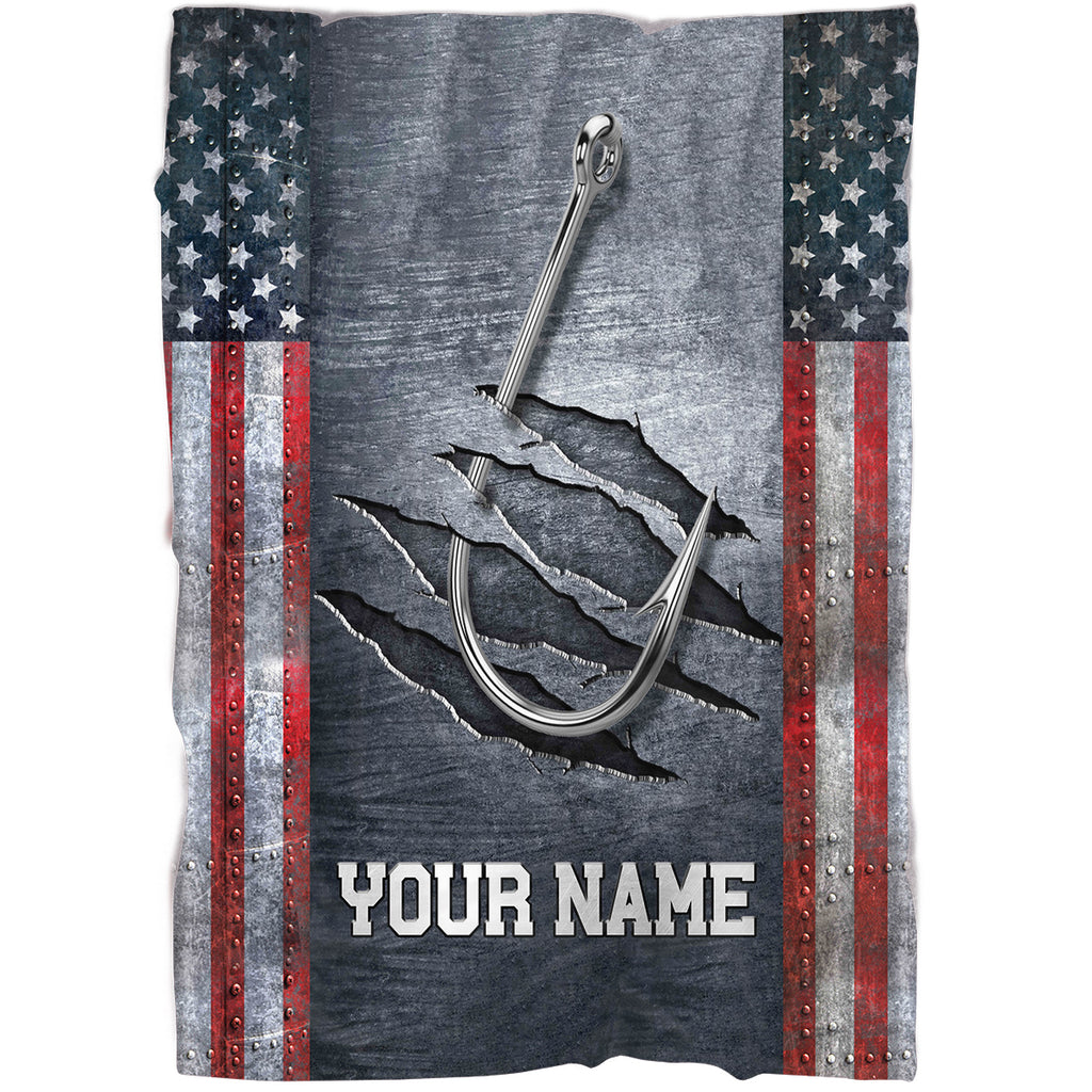 Personalized American flag fish hook Fishing Fleece Blanket, Gifts For Fisherman NQS7004