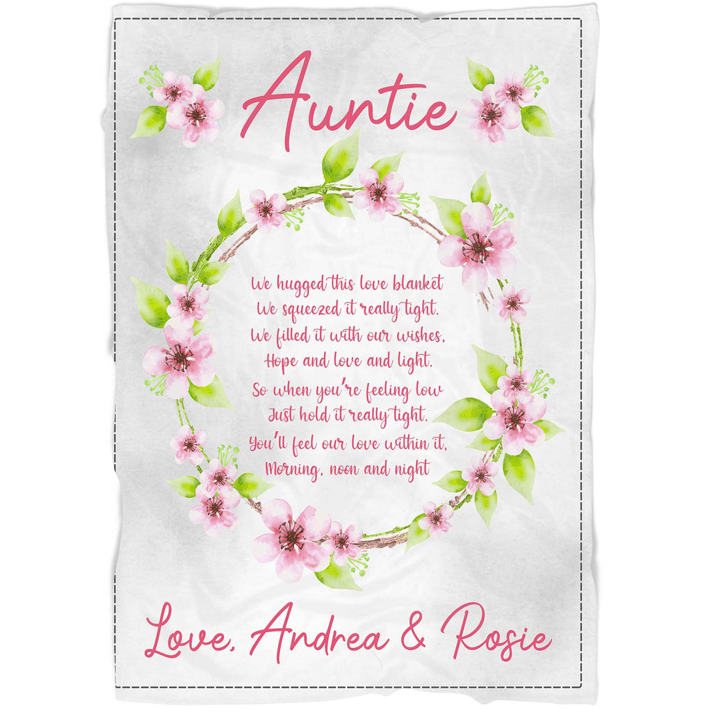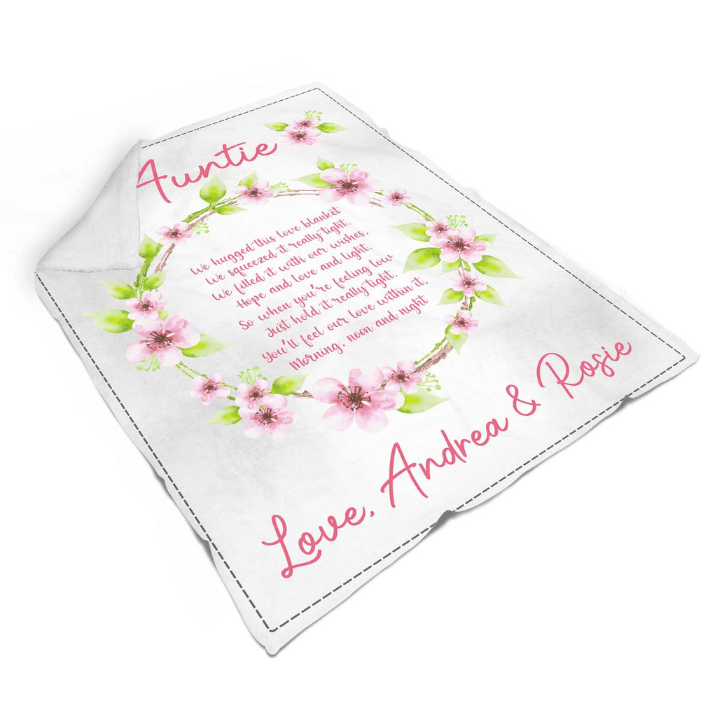Personalized Auntie Blanket| Floral Wreath Blanket for Aunt| Custom Gift for Aunt on Christmas, Birthday, Mother's Day| Auntie Gift from Nephew & Niece| JB214