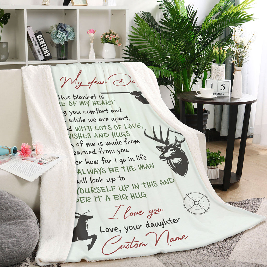Personalized Blanket My Dear Dad| Custom Hunting Gift for Dad| Dad Blanket Hunting Theme| Gift for Dad, Father on Christmas, Birthday, Thanksgiving, Father's Day| JB203