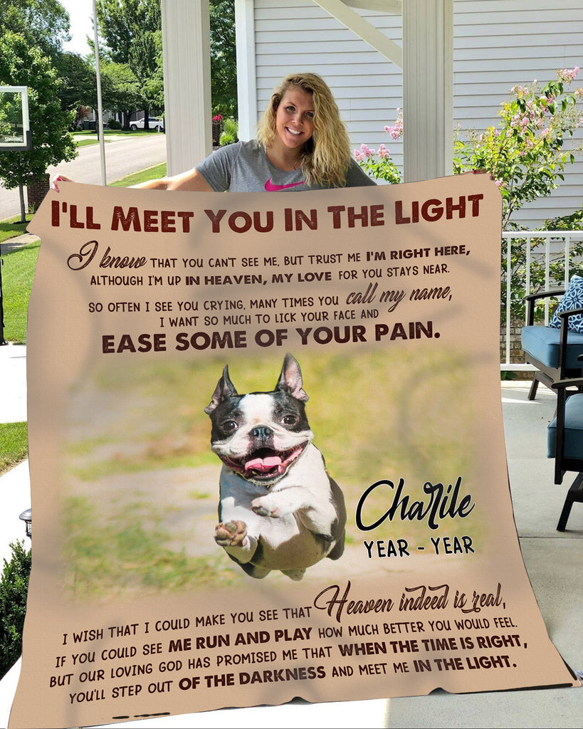 Personalized Dog Memorial Blanket| I'll Meet You In The Light Fleece Blanket Dog Loss Gift Memorial Blanket for Dog Sympathy Gift for Dog Owners Dog Memorial Gift for Pet Owners| JB278