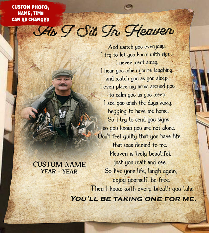 Personalized Memorial Blanket - As I Sit in Heaven, Sympathy Gift for Loss of A Loved One in Heaven N2687