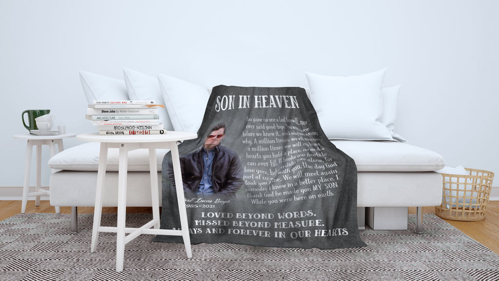 Personalized Son Memorial Blanket| Son in Heaven Fleece Blanket Memorial Gift for Loss Son In Loving Memory of Son Angel Son Remembrance Blanket Loss Son Sympathy Condolence Gift| JB257